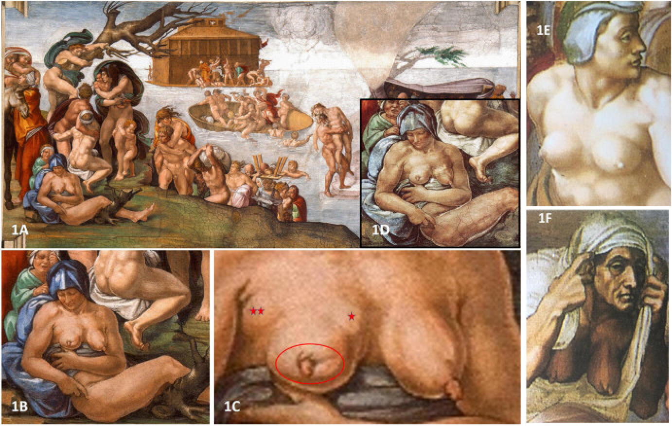 Reste à savoir pourquoi Michel-Ange aurait représenté une femme sur le point de mourir d’un cancer du sein. Ce pourrait-être une référence à sa mère, décédée jeune, et l’enfant en pleure derrière elle pourrait-être tout simplement le peintre lui-même. Il existe une deuxième hypothèse, qui tient tout autant la route, comme quoi Michel-Ange ferait référence à la décadence humaine. L’artiste originaire de Toscane était très influencé par le néoplatonisme, courant de pensée selon lequel la quête de la beauté et de l’harmonie pouvait mener à l’immortalité, tandis que la défiguration physique ou la maladie était une expression de l’abîme spirituel. La vue de la poitrine malade de cette femme pourrait donc être un avertissement pour les spectatrices et spectateurs…