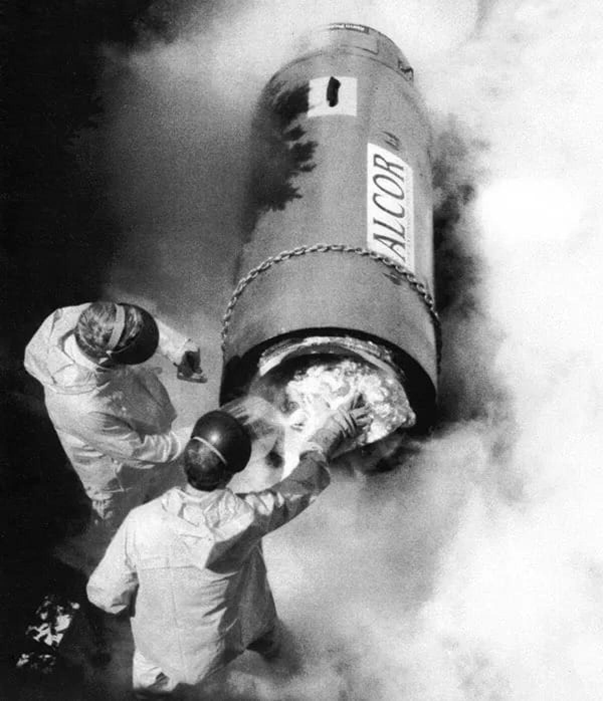 Mais retournons à notre James Hiram Bedford. C’est juste après son décès, à l’âge de 73 ans, que l’homme a été cryogénisé. Son corps a été immédiatement préparé et son sang remplacé par du diméthyl-sulfoxyde, un produit destiné à protéger ses organes. Le cadavre a ensuite été placé dans une cuve d’azote liquide à -196°, où il repose encore, 58 ans plus tard, dans l’espoir que la science progresse assez pour le réanimer. En 1991, après 24 ans de conservation, le conteneur de James Hiram Bedford a été ouvert pour vérifier l’état du corps… Et les résultats étaient étonnants. L’ensemble était relativement bien conservé, bien que certaines parties de la peau aient été décolorées. Le visage paraissait plus jeune que celui d’un homme de 73 ans. Les yeux, mi-ouverts, avaient une teinte blanchâtre due au givre. Un mort-vivant ?