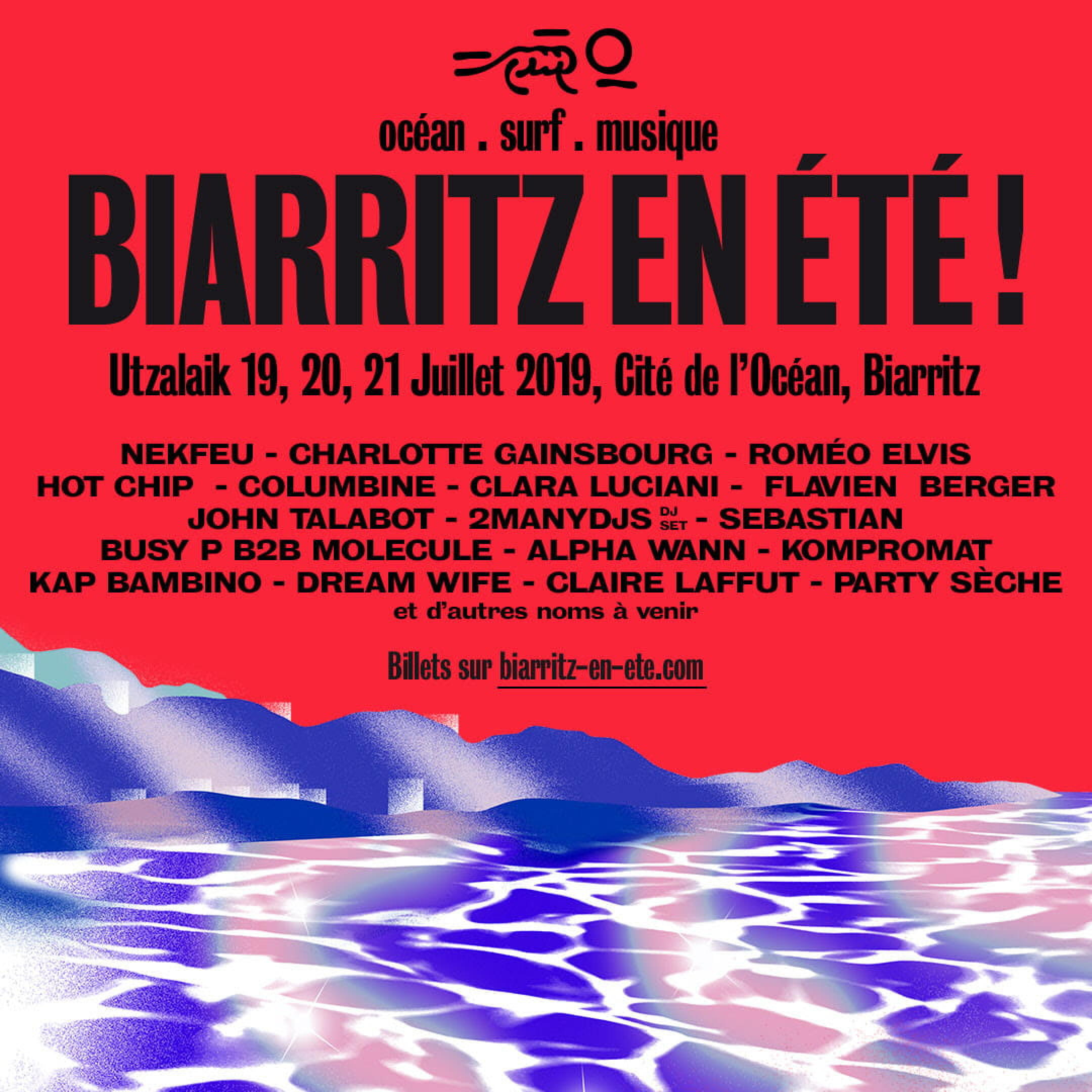Pop et écoresponsable, le festival Biarritz en Été ! engage, au mois de juillet, sa seconde édition, toujours du côté de la Cité de l’Océan et du Pays Basque. Et si on savait jusqu’ici qu’à Biarritz, là où le soleil brille sur la peau, on pourrait assister aux concerts de Nekfeu, 2manydjs, Kap Bambino, Romeo Elvis, Flavien Berger, Kompromat ou encore Charlotte Gainsbourg, voilà aujourd’hui huit noms qui s’ajoutent à un line-up auquel il faut donc ajouter, aussi, les noms de Columbine, Clara Luciani, John Talabot, Claire Laffut, Party Sèche, et Busy P en B2B avec Molécule.