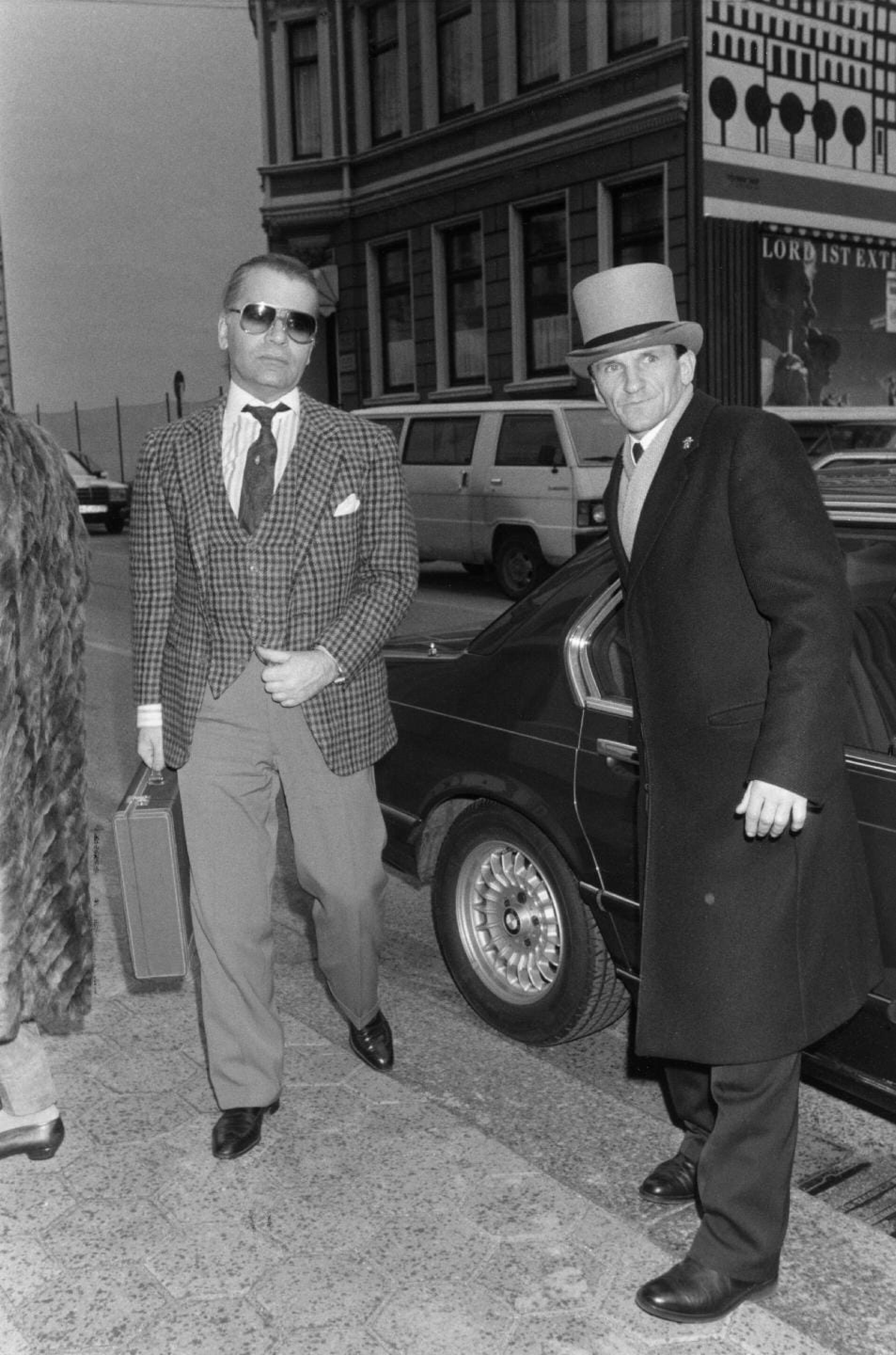 Plus grand, dans le Paris des années 70 et des grosses teufs du Palace, Karl laisse libre cours à sa tignasse brune, porte une barbe de trois jours et des débardeurs échancrés, mais aussi des pantalons de flanelle à revers, des chemises à imprimés fleuris, des bottes de mousquetaire sur costume rayé, comme au mariage de Paloma Picasso en 73. Et même un monocle. Là encore, c’est le rôle de l’aristo déjanté. Il veut se démarquer.