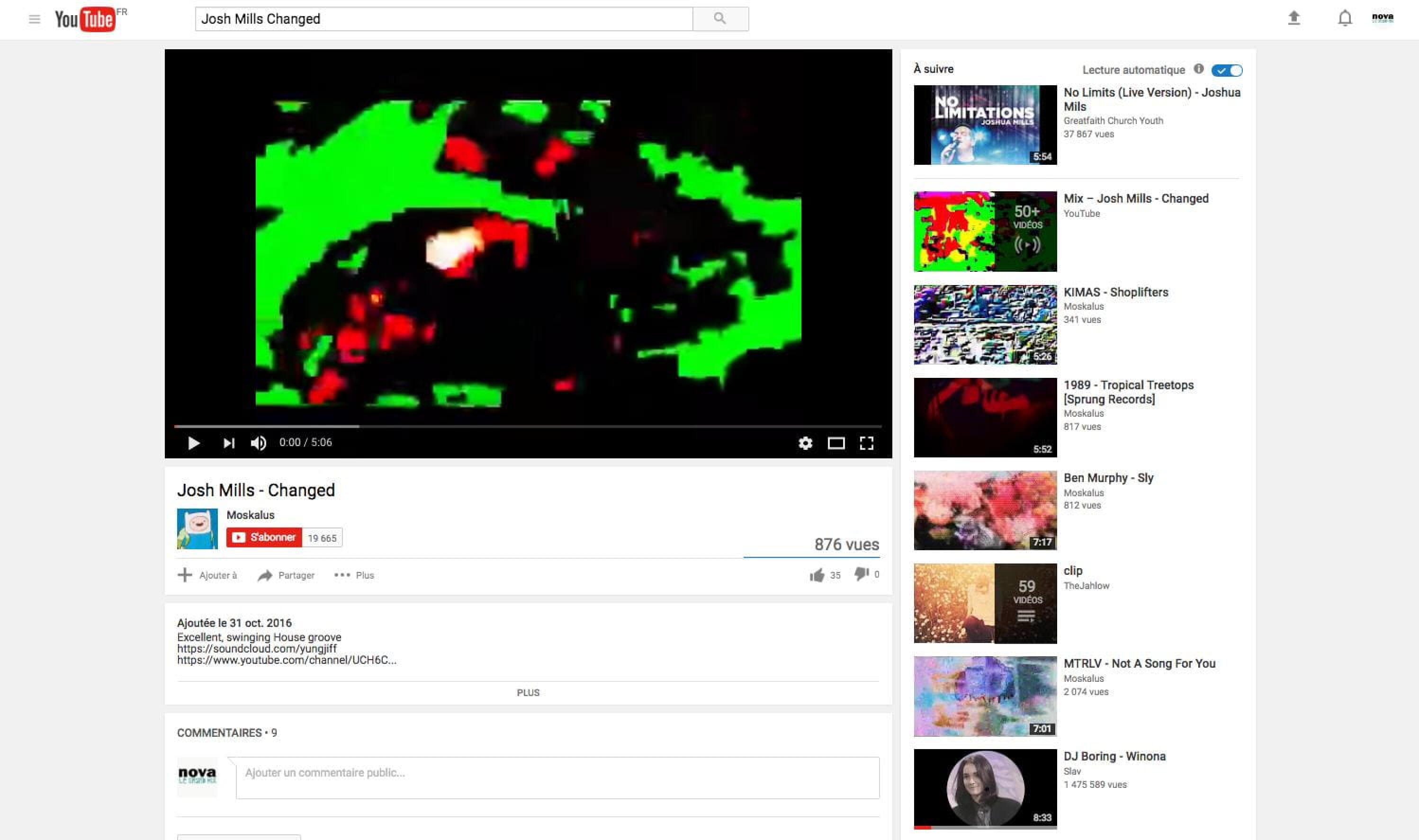 Effectivement, en allant écouter ce morceau de Josh Mills, Changed, qui cumule près de 900 vues, les suggestions sur la barre de droite proposent d’autres morceaux qui eux aussi ne passent pas la barre des mille vues. (Bien que le Winona de DJ Boring ne soit pas loin derrière).