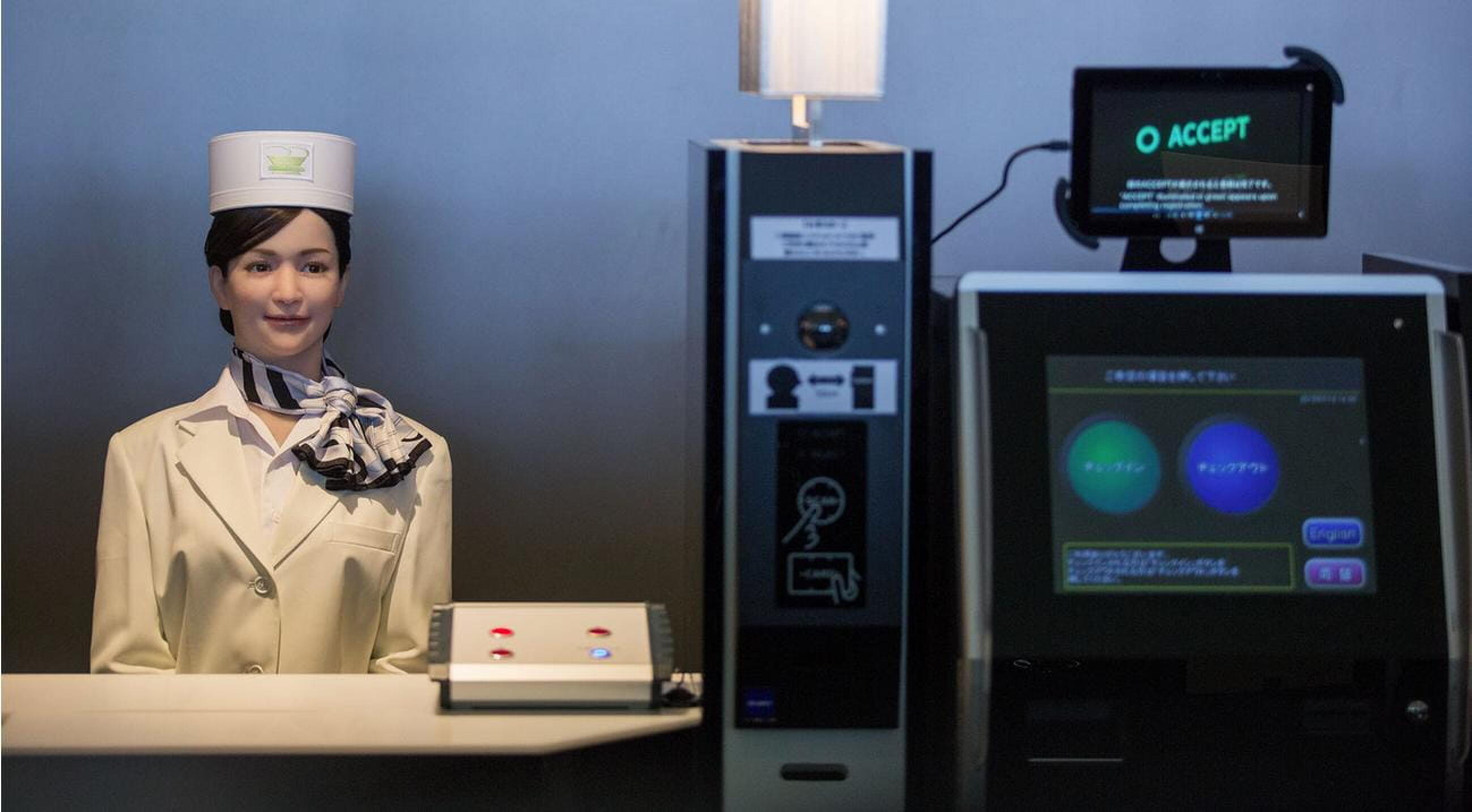 Bienvenue à l’hôtel Henn na au Japon! Vous êtes en face du parc d’attractions Huis Ten Bosch qui reconstitue l’environnement et le charme urbain des Pays-Bas. Et sous le soleil de la préfecture de Nagazaki, un drôle d’hôtel bel et bien neuf a vu le jour. Dans un état d’esprit écolo et soucieux du prix des nuitées, Hideo Sawada a décidé d’inventer une maison quasiment uniquement gérée par des robots. Son objectif est d’atteindre « l’efficacité ultime » dans une ambiance sympathique et détendue… À vous d’en juger.