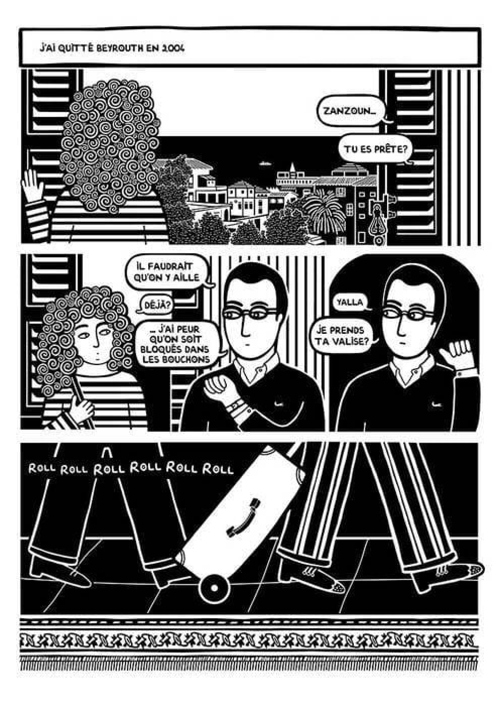 Le deuxième nom à retenir, c’est celui de Zeina Abirached. Née et élevée à Beyrouth, elle arrive à Paris à 23 ans et sort « Mourir, Partir, Revenir, Le jeu des Hirondelles », album dans lequel elle raconte son enfance au Liban. Dans le cadre de l’exposition vous pourrez découvrir son feuilleton « Paris n’est pas une île déserte » en trente planches dont une est publiée chaque lundi sur le site de l’exposition. La première ci-dessous (et le reste ici) :