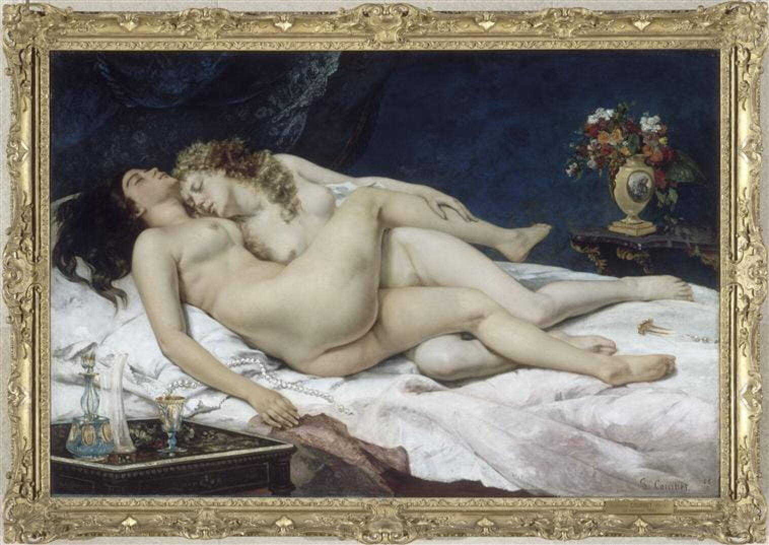 Ca fait des dizaines d’années que les chercheurs s’arrachent la touffe pour prêter une identité à cette vulve. C’est une obsession, un défi de la communauté scientifique, le Boson de Higgs de l’histoire de l’art. Un argument de fiction aussi, qui a notamment permis à de la littérature mineure – celle de Christine Orban (J’étais l’origine du monde, 2000) d’écouler un peu de papier à la Fnac. Alors qui est cette fille retrouvée ? Franchement, c’est difficile à certifier. Peut-être Joanna Hiffernan, qu’on surnommait « la Belle Irlandaise », et qui a servi de modèle à Courbet à plusieurs reprises, pour des compositions ouvertement érotiques, en particulier les incroyables Lesbiennes (aka Paresse et luxure) de 1866, conservées au Petit Palais.