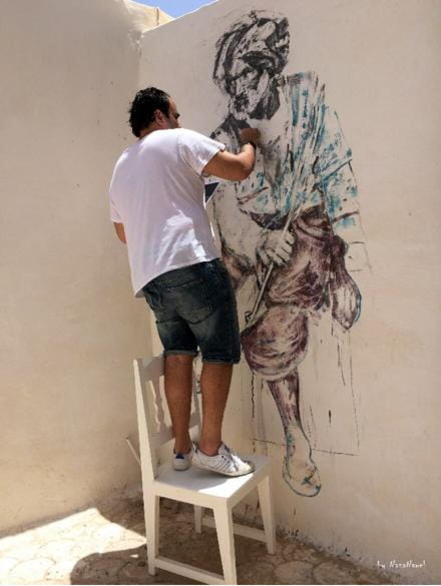 Djerba, la douce comme l’appelle certains, est une île qui s’offre aujourd’hui au monde. Ce petit bout de terre au cœur du village d’Erriadh abrite l’une des plus anciennes synagogues après celle de Jérusalem. Cet été, elle a pu accueillir une centaine d’artistes de 30 nationalités différentes. Ils ont créé des œuvres d’art en harmonie les uns avec les autres. Dabro artiste d’origine tunisienne me raconte qu’au départ, le pari n’était pas forcément gagné : « J’ai été parmi les premiers artistes,  je m’en souviens, tout était vierge. Au départ, les habitants se posaient beaucoup de questions et puis on a dû leur expliquer pour les rassurer sur nos intentions et ce qu’on voulait apporter au village artistiquement, le fait que je sois tunisien facilitait la tâche bien sûr… »
