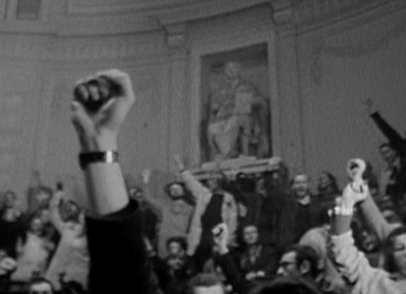 A l’image du Living Theater, la cour de la Sorbonne ressemble ce jour-là un vaste théâtre social où chacun défend ses idéaux #LaBarricade #Mai68 pic.twitter.com/3N12at3IlO