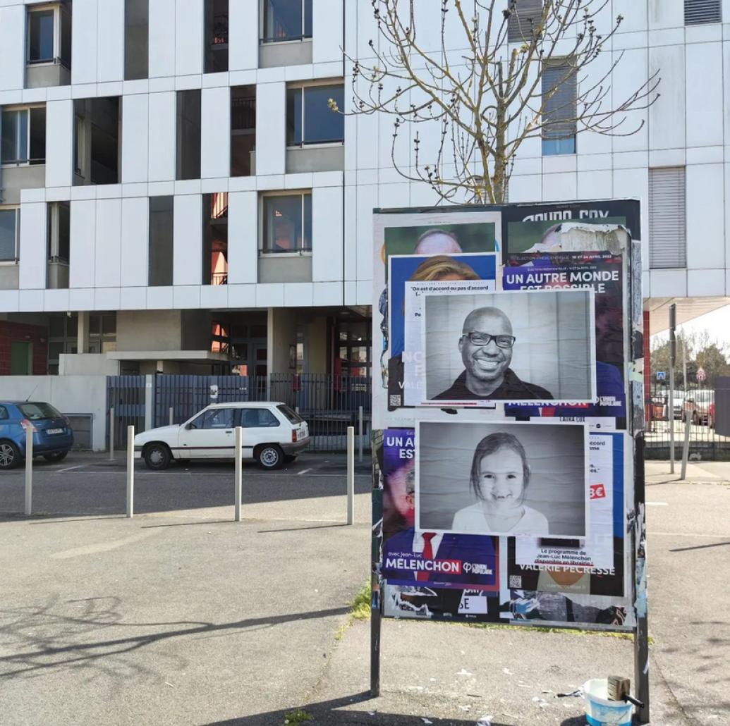 Vous avez peut-être remarqué ces portraits photo en noir et blanc si vous vous êtes dernièrement baladés à Grenade, Cadours ou Blagnac, des petites villes non loin de Toulouse… Ces photos d’inconnus de tous âges, sont collées sur les panneaux d’affichage d’expression libre, et recouvrent les affiches de campagne des différents candidats à l’élection présidentielle.