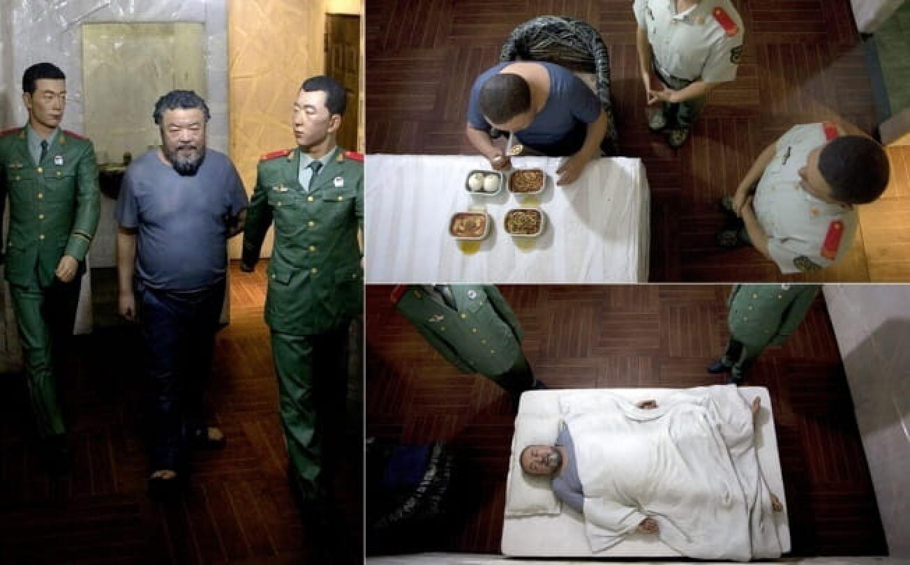 Faute de passeport pour se rendre dans la Cité des Doges, Ai Weiwei y a installé cette maison de poupée métamorphosée en prison, avec six scènes de son incarcération : sous la douche, marchant dans sa cellule, couché en train de dormir, en train de prendre son repas, parlant, et aux toilettes. Des situations durant lesquelles ses deux geôliers ne le quittaient pas. Un peu voyeuriste à son tour, le visiteur se sent tout aussi gêné d’être le témoin de ces scènes, à travers des fenêtres taillées dans les boîtes.