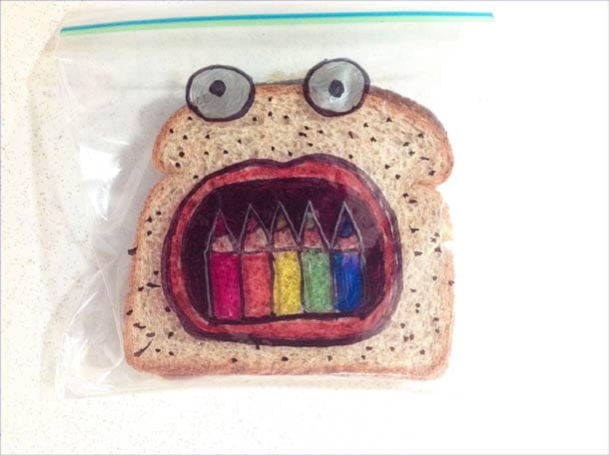 C’est l’histoire d’un père qui dessine sur les tartines de son fils tous les jours depuis 2008. Le graphic designer David LaFerriere a pris l’habitude depuis cinq ans de réaliser dessins sur les emballages de sandwiches de son fils afin d’égayer sa journée, comme l’explique le site Ufunk. Il en ressort une superbe collection de plus de 1100 dessins-tartines !