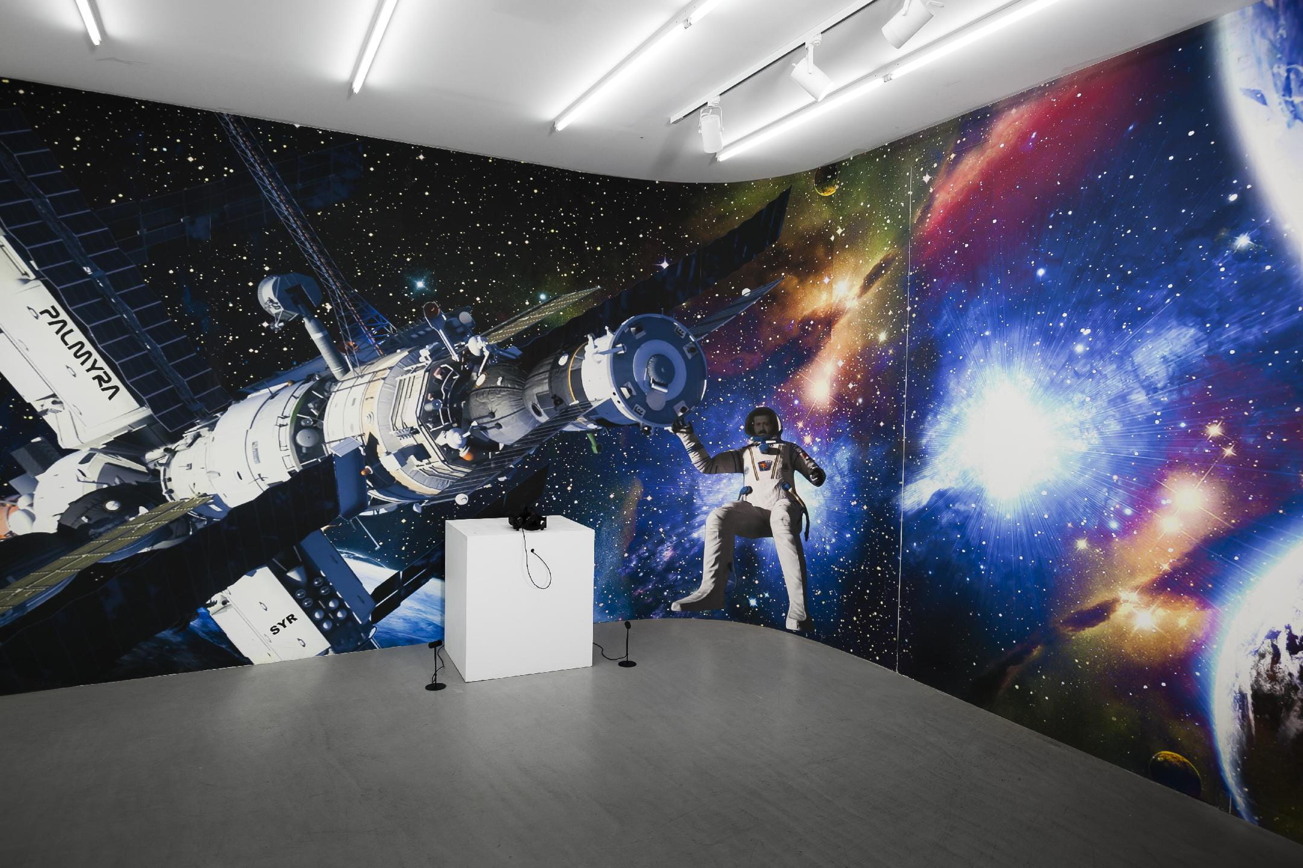 Avec son installation vidéo, peintures et photographies intitulée Space Refugee Project, Journey to Mars, 2016 (voir photo plus haut), Halil Altindere raconte l’histoire de cet astronaute syrien héros du régime de Assad père et fils qui devient dissident en 2011 et se retrouve contraint à l’exil, réfugié en Turquie. Et si l’espace devenait une nouvelle terre d’accueil ? Et si, lassés d’errer sur Terre, les réfugiés partaient à la conquête de nouvelles planètes pour retrouver enfin un espace de vie ? Il fallait l’ironie mordante d’un artiste pour imaginer un tel projet. En l’occurrence celle de Halil Altindere, artiste turc d’origine kurde qui a développé une installation cosmo-politique du nom de « space refugee » exposée en ce moment à la galerie Paris-Bejing.