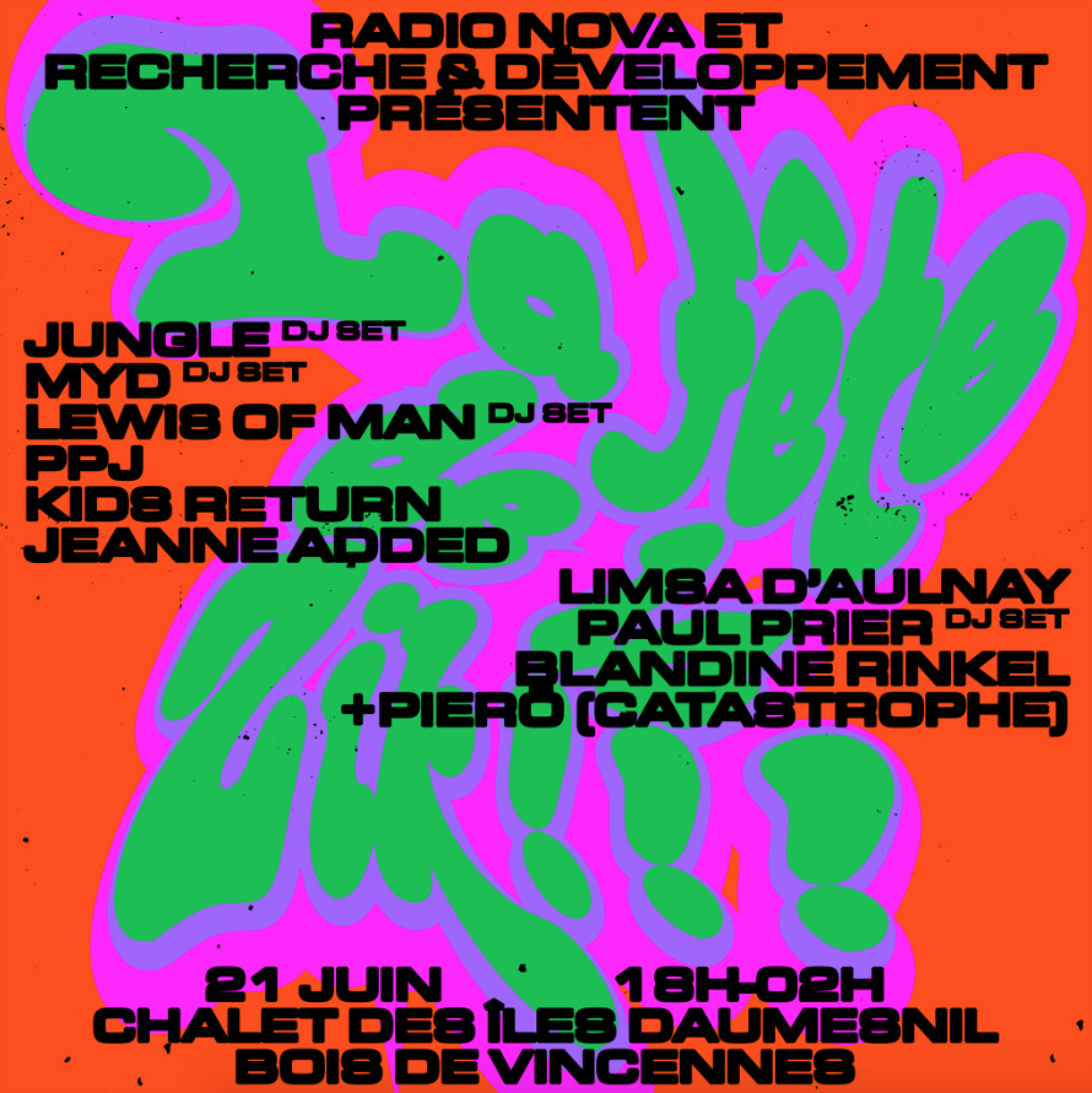 Radio Nova et Recherche & Développement font la Fête de la musique au Chalet des Iles de Vincennes. Avec Jeanne Added, Myd, Lewis Ofman, Blandine Rinkel et Pierō (de Catastrophe) PPJ, Limsa D’aulnay, Kids Return, Moodoid, et Paul Prier.