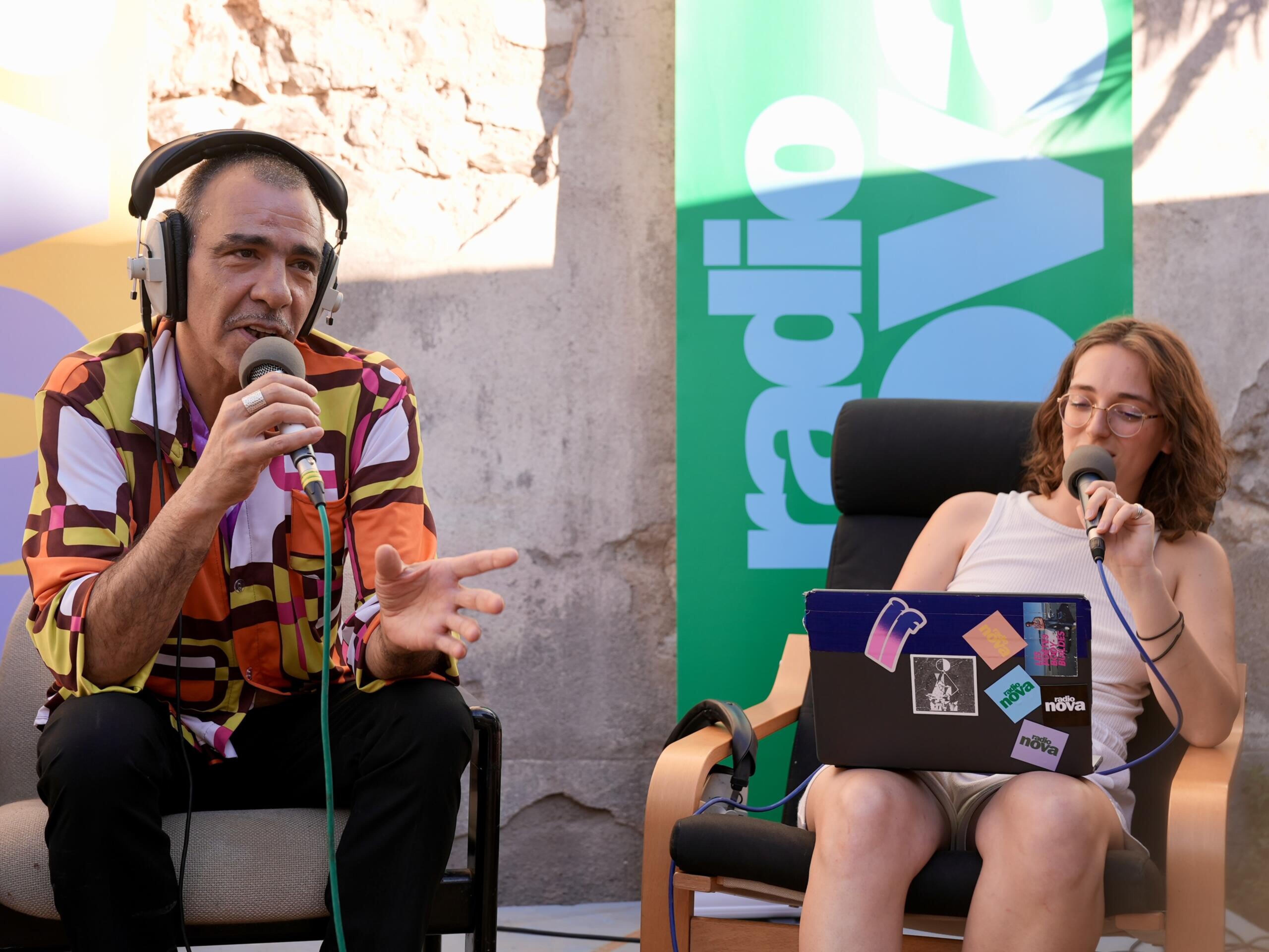 Sur les quais des Moulins, le tiers-lieu s’anime au passage de notre bande de joyeux agent·es du fun, avec une émission semi-carnaval, semi-free party, avec Plumes & Paillettes et DJ Numa. L’un, est un duo techno tropical à l’image de leur dernier projet Maremoto, l’autre est un habitué de Nova et curateur des soirées Cigalou à la guinguette parisienne Rosa Bonheur.