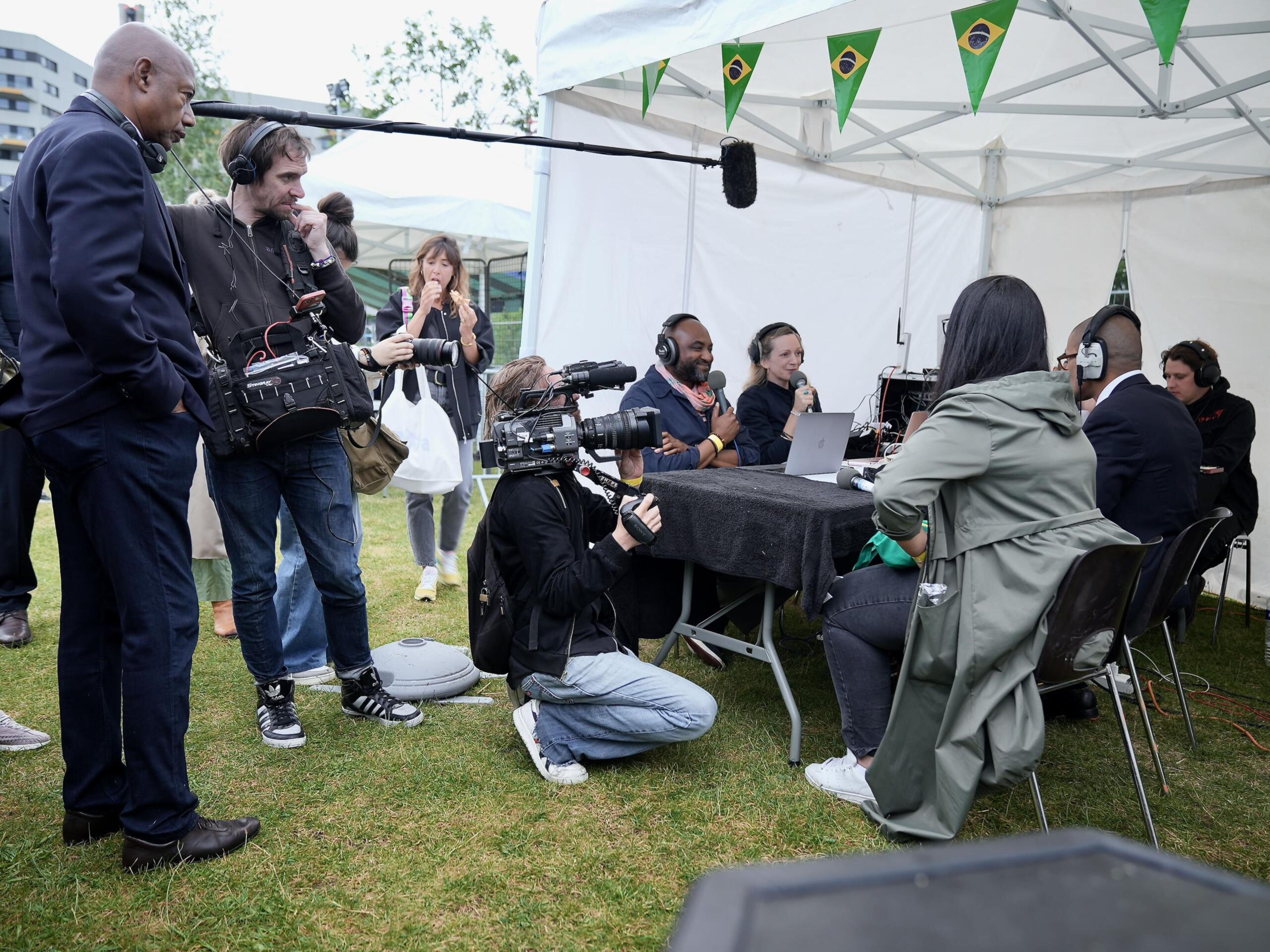 Mais qu’à cela ne tienne, sous la tente Nova, on en a décidé autrement. Exit les concerts donc, mais place à une grande émission, où l’on a pu poser quelques questions au maire de la ville, Karim Bouamrane, et recevoir une bonne partie des artistes programmé·es. A l’instar d’Amadou et Mariam, qui venaient ce jour fêter leur cinquante ans de carrière, de l’artiste Flavia Coelho, venue avec son dernier album Ginga sorti en mai, ou le groupe Mauvais Oeil et son nouvel EP Première Escale.