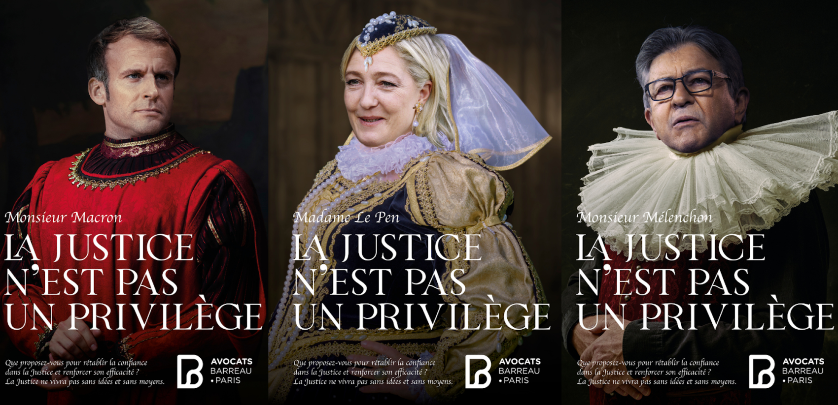 Le barreau des avocats de Paris a lancé il y a quelques jours une campagne d’affichage à destination des candidats à l’élection présidentielle. Des affiches sur les quelles ont voit des candidats à l’élection présidentielle avec des habits de monarques de la renaissance ou du moyen-âge. On peut y lire « la justice n’est pas un privilège ». Julie Couturier, bâtonnière de Paris – elle représente les 31.000 avocats de Paris – nous explique le message et l’utilité de cette campagne, dans son bureau, à la Cour d’Appel de Paris.