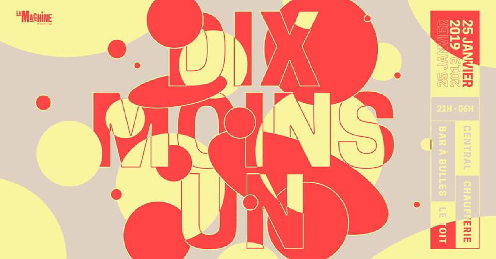 La Machine : L’anniversaire 10-1 || Le vendredi 25 janvier 90 Boulevard de Clichy, 75018 Paris De 21:00 à 6:00 || Gratuit avant 23:00 || Prévente spéciale anniv’, 10 – 1 = 9€  || Ici l’événement