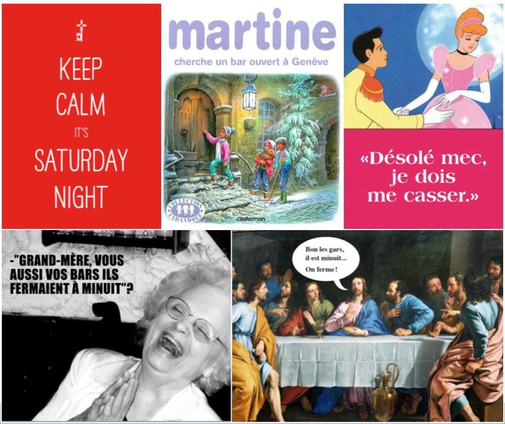 A Paris, on avait vu les clubs sanctionnés placardés d’affichettes de type « fermé pour cause de ville morte, merci de vous adresser à la capitale d’à côté ». Les Genevois, eux, donnent plutôt dans le lol tumblresque et connecté.