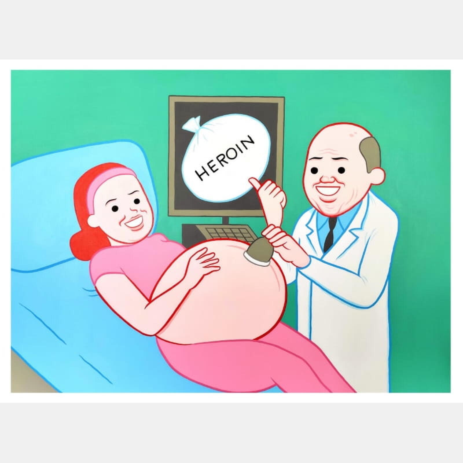 Aussi bête et méchant qu’irrésistible, l’humoir noir aux innocentes couleurs acidulées de Joan Cornellà est un véritable phénomène viral ! Avec plus de 7 millions de followers tous réseaux confondus – seul Banksy est au dessus dans les arts visuels – il prouve avec brio que l’on peut rire de tout, pour mieux pointer du doigt les inégalités et la violence de l’époque. Editée pour son dernier solo show à la Galerie Arts Factory, l’affiche « Heroin » s’est tout naturellement imposée pour l’opération #SupportYourLocalDealer !