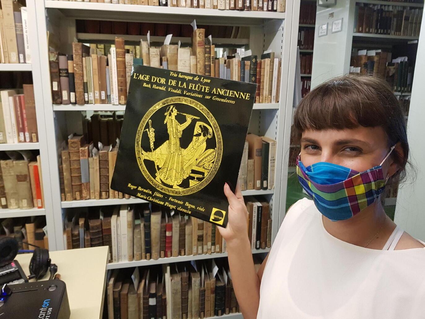 De retour dans le silo de la Bibliothèque de Lyon, là où sont conservés les 100’000 vinyles hérités, entre autres, de l’ORTF locale. Après un mois loin des rayonnages pour cause de fermeture des lieux publics, on revient, masqués, et avec les mains enduites de solution hydroalcoolique, corona oblige. C’est Tryphème, jeune productrice de musique électronique, qui fouille ce mois-ci dans la collection. Sa personnalité est aussi aventureuse que sa musique et pour faire sa sélection elle a opté pour une approche radicale en ne choisissant quasiment que des disques qu’elle ne connaissait pas.