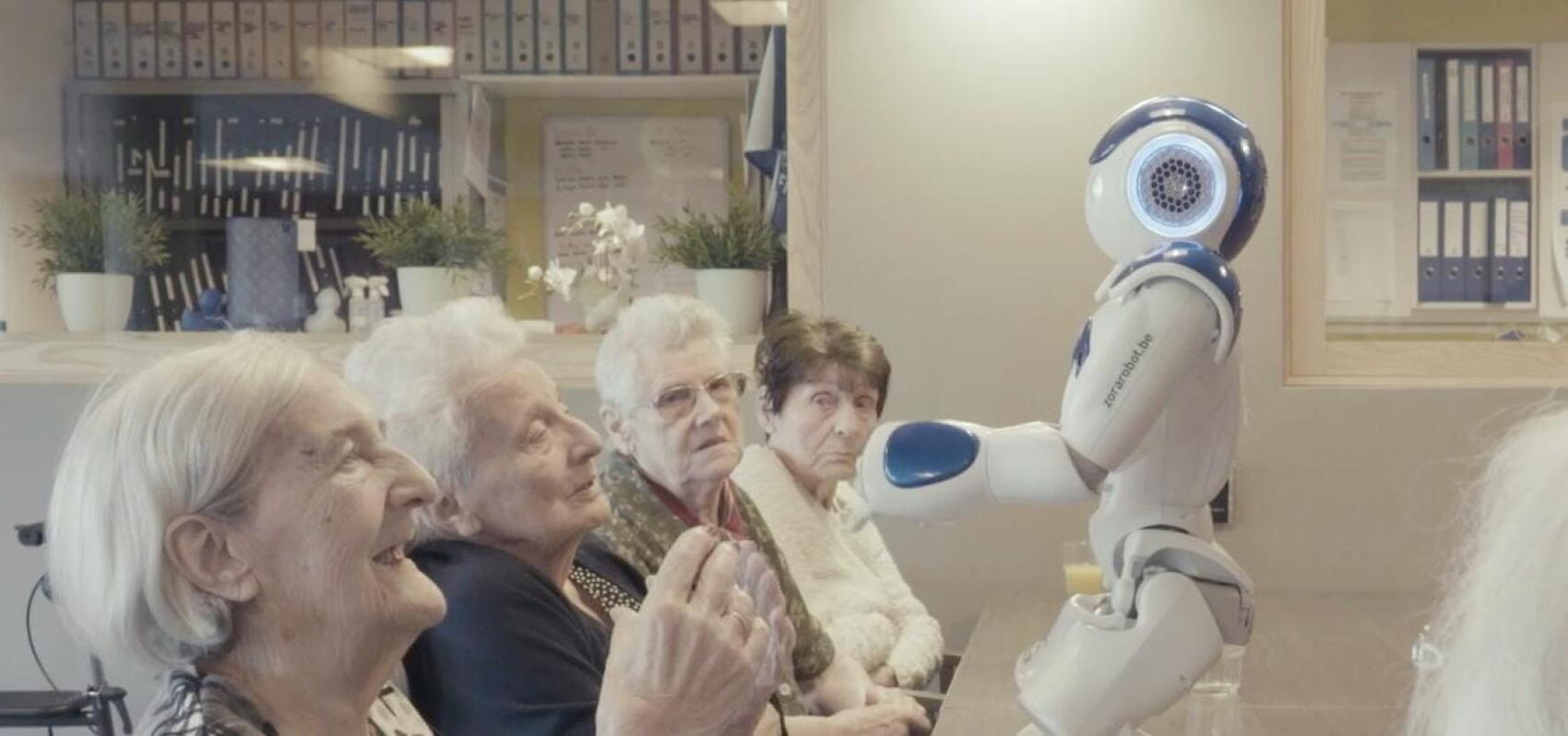 Au croisement de l’art et de la science, L’année du robot traite de l’être humain et de son double artificiel, le robot. Telle une série d’archives détaillant les premiers contacts et dialogues entre un robot et des êtres humains, il étudie le phénomène de la dissonance cognitive, infime et mystérieux espace relationnel qui se déploie entre ces deux acteurs. Il fait intervenir des personnes âgées, parfois atteintes de la maladie d’Alzheimer ou de démence et de jeunes adultes autistes ou souffrant de troubles neurologiques.