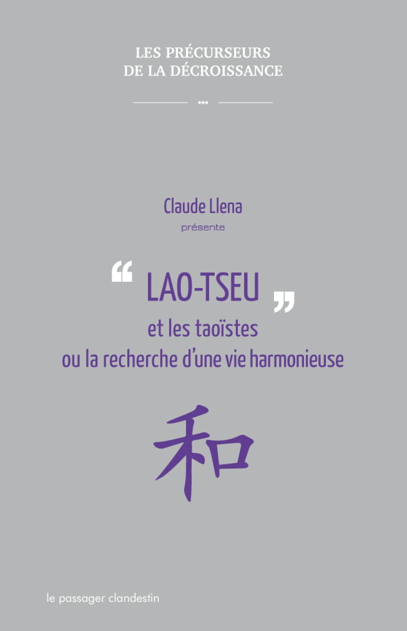 Lao Tseu, et les taoistes ou la recherche d’une vie harmonieuse… par Claude Llena . Collection « les précurseurs de la décroissance » dirigée par Serge Latouche . 8 Euros . 93 pages . (edition Passager Clandestin)