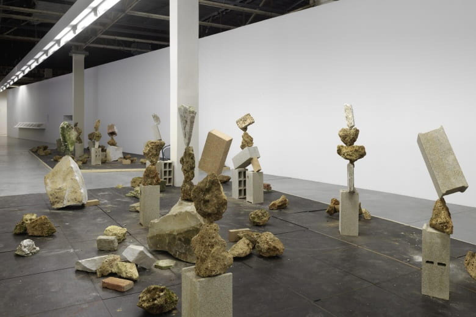 Vue de l’exposition « Le Bord des Mondes », Palais de Tokyo, 2015. Photo : André Morin. Bridget Polk, Balancing rocks, 2015. Courtesy de Bridget Polk.