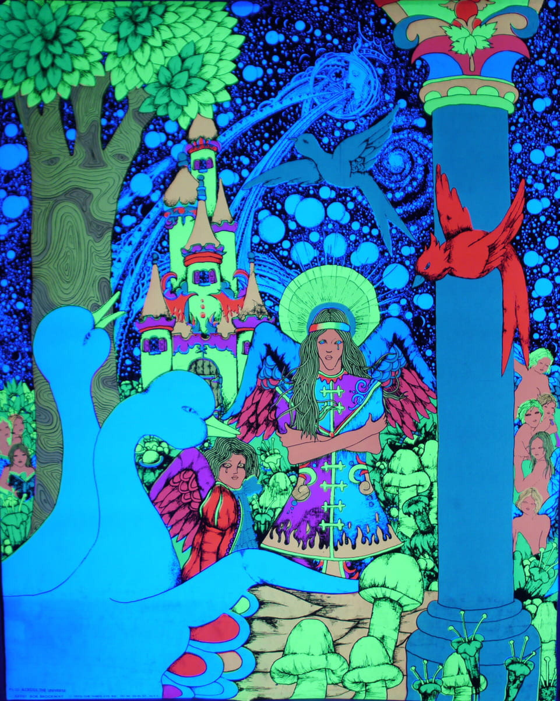 Concentrons-nous sur le positif. L’installation de la Porte de La Villette s’articule donc en deux parties. La partie exposition, qui présentera une sélection inédite des œuvres du Centre d’Art Psychédélique sous une forme immersive en trois parties : œuvres contemporaines (Psychédélic Outsiders), œuvres modernes (lithographies, posters, tapisseries, art brut, sérigraphies lumière noire), et un espace dédié à l’artiste Laoutec qui expose sa série Représentation(s) ; une cosmogonie 3D.