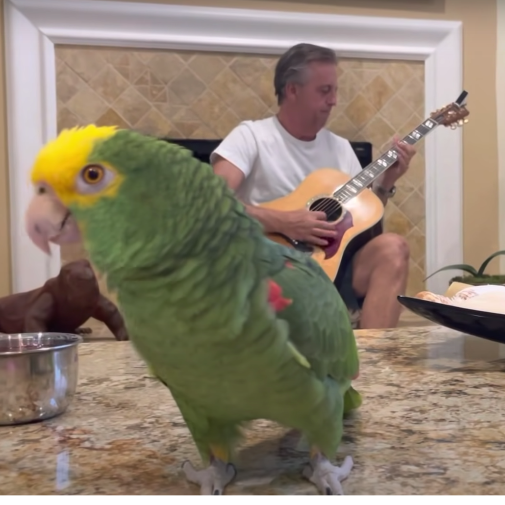 Un Amazone à tête jaune, un joli petit perroquet adopté il y a 18 ans aimait chanter pendant la pandémie. Il criait toujours lorsque l’homme jouait de la guitare. Et un beau jour, alors que son propriétaire, un retraité, jouait Stairway to heaven, et que le perroquet “criait”, monsieur s’est approché. Et l’Amazone à tête jaune s’est mis à chanter. Et l’oiseau – Tico – a du vocabulaire : il demande de l’eau fraîche, dit bonjour quand quelqu’un entre, il imite aussi l’aboiement du chien…