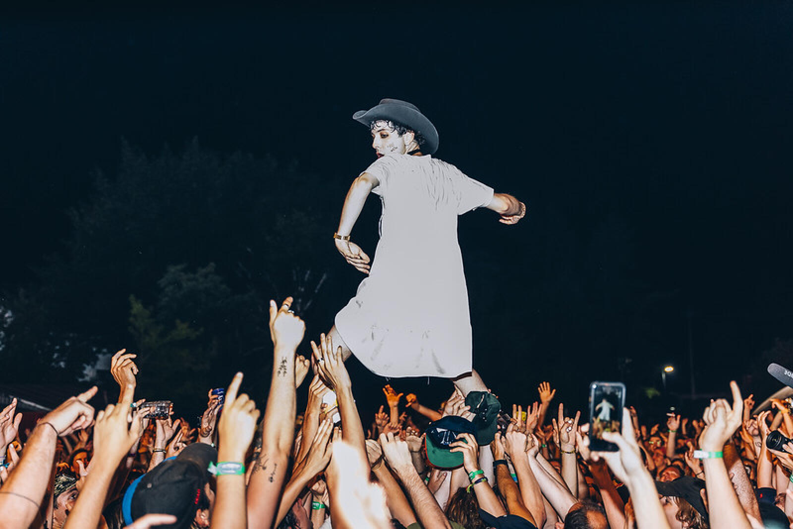 Puis King Hannah et sa chanteuse Hannah Merrick, timide, qui n’ose dire un mot avant le quatrième morceau. Impeccable autant sur scène que sur disque, les quatre anglais ont captivé le public de la scène la plus verdoyante et la plus boisée du festival, on serait bien resté une heure de plus avec leur rock mi shoe-gaze, mi-balade mélancolique.