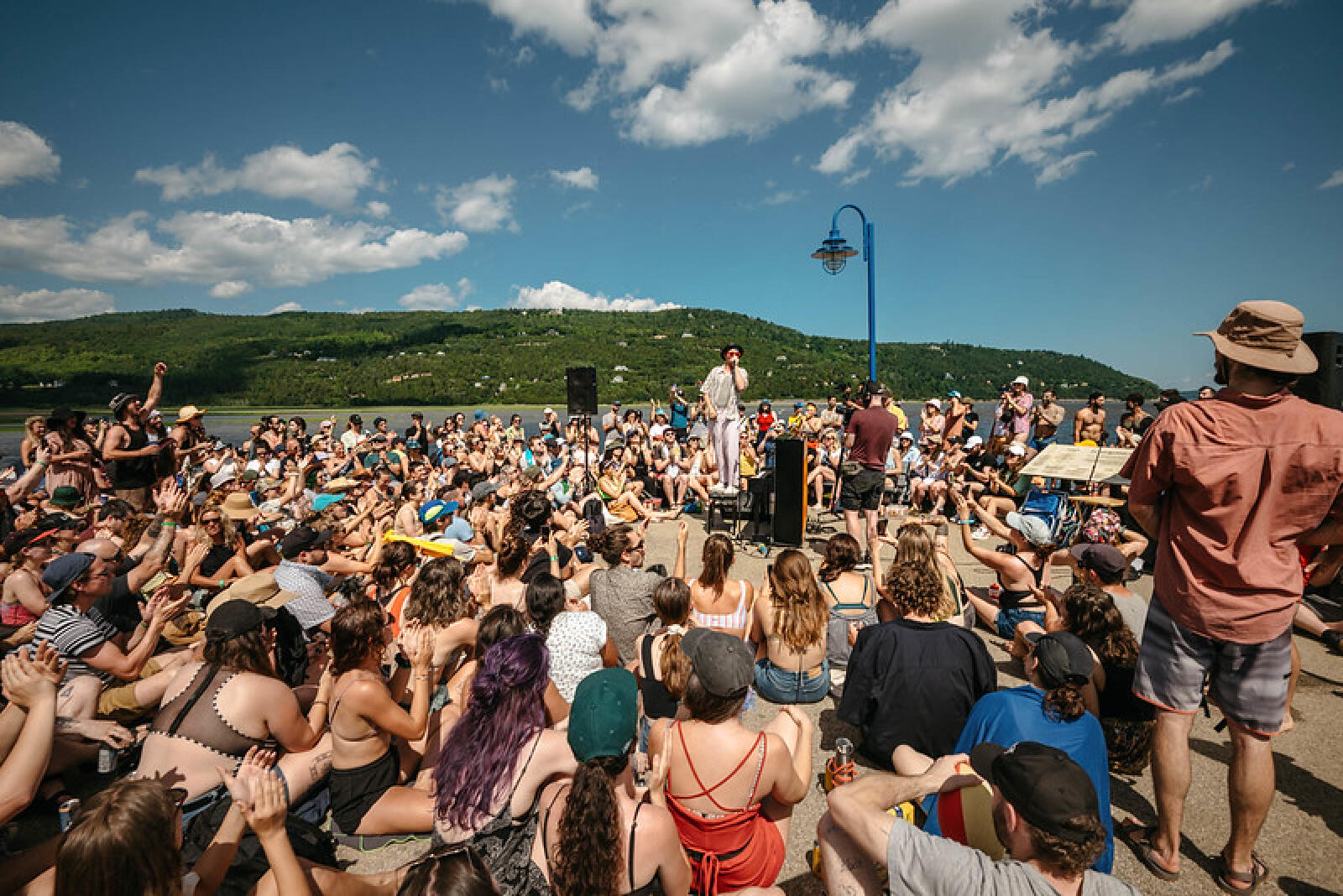 Et puis aussi pas mal d’artistes qui tournent déjà sur Nova. Les Louanges, ou Vincent Roberge pour les intimes, qui en plus de son show puissant sous le chapiteau, a offert un de ces fameux concerts imprévisibles au bord du St Laurent, tout au bout du quai en fait, tout seul au piano, magnifique.