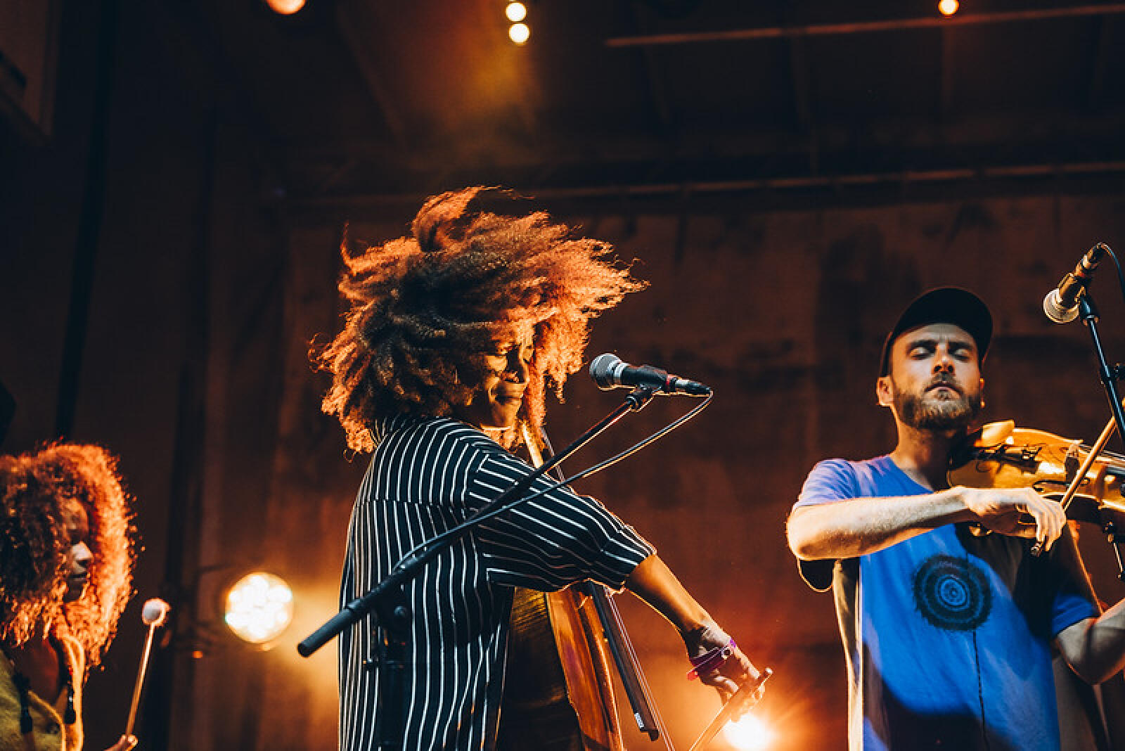L’arrivée dans le comté de Charlevoix (avec un bon jetlag) se fait sous une pluie torrentielle. Mais rien n’entame la bonne humeur et la volonté de faire le “party” de mes deux covoitureuses. A peine le temps d’installer leur tente dans un jardin privé du “camping citoyen” (quand les habitants prêtent leur allées, jardins, place de stationnement, c’est classe !), le tout entre deux averses, et c’est parti pour la première soirée avec Pierre Kwenders qui nous fait danser dans 5 langues, en lingala, français, anglais, tshiluba et kikongo. L’artiste d’origine Congolaise a renoué avec sa vie d’avant la musique avec son plus récent album José Louis And The Paradox Of Love, José Louis Modabi étant son vrai nom, et nous en a donné un bel aperçu en live.