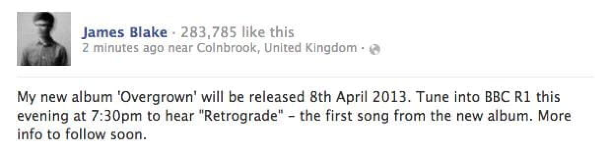 James Blake vient tout juste de l’annoncer à ses fans, nous, son nouvel album Overgrown sortira le 8 avril de cette année.
