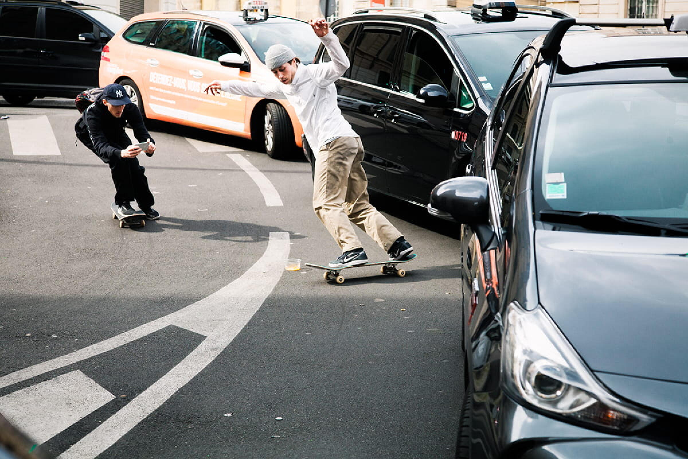 Ces jeunes pousses du skate ont donc eu la chance de passer les prochaines étapes du concours aux côtés de professionnels, bien connus du milieu mais qui ont aussi tenu à présenter des scénarios inédits pour s’adapter au propos de ce contest. Ces 8 trios ont arpenté les rues de Paris pendant 6 jours, smartphone à la main et skate au pied pour livrer une vidéo et une série de photos racontant leurs déambulations sur skateboard.