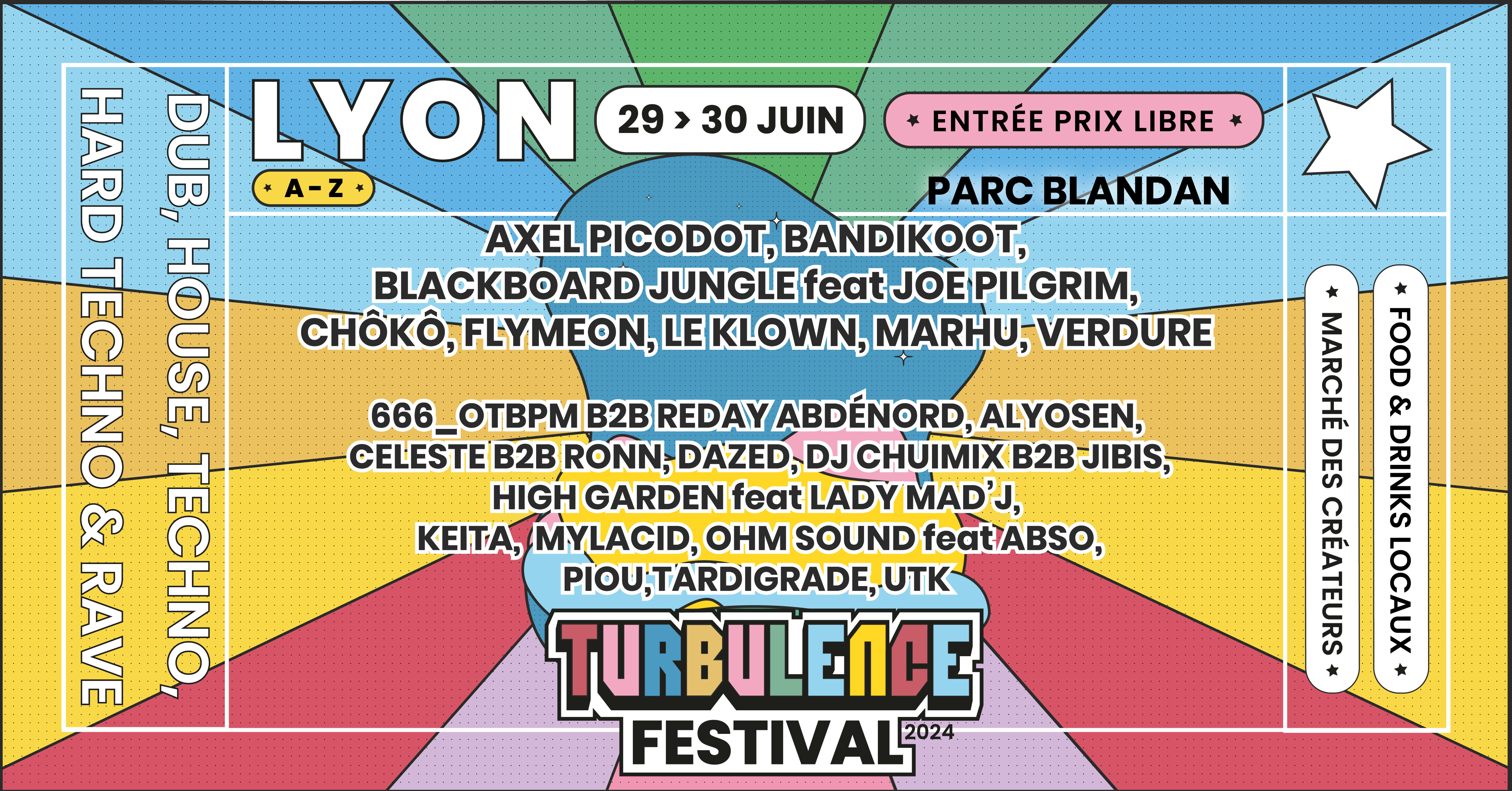 Rendez-vous les 29 et 30 juin au Parc Blandan pour le Turbulence Festival de 14h à 23h le samedi et de 14h à 20h le dimanche !