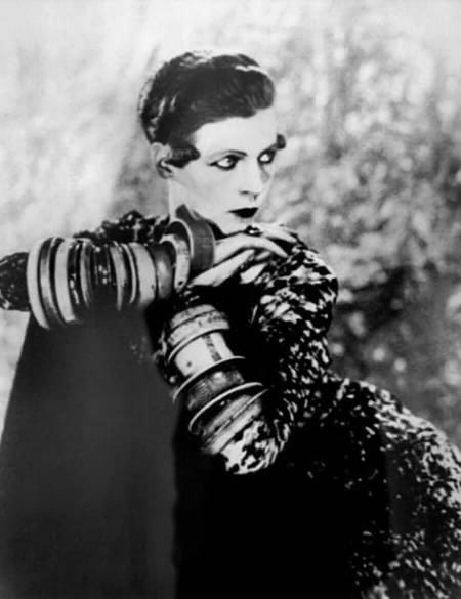 Nancy Cunard, héritière de la compagnie de navigation du même nom –et qui existe encore – est née juste avant le siècle, veuve avec la guerre de 14, arrive en 1920 à Paris et incarne les années folles en étant muse ou maitresse (ou les deux) de Aldous Huxley , Tristan Tzara, James Joyce, Ezra Pound, Brancusi, Man Ray, Hemingway, Beckett , Aragon.. Pour ne citer qu’eux !