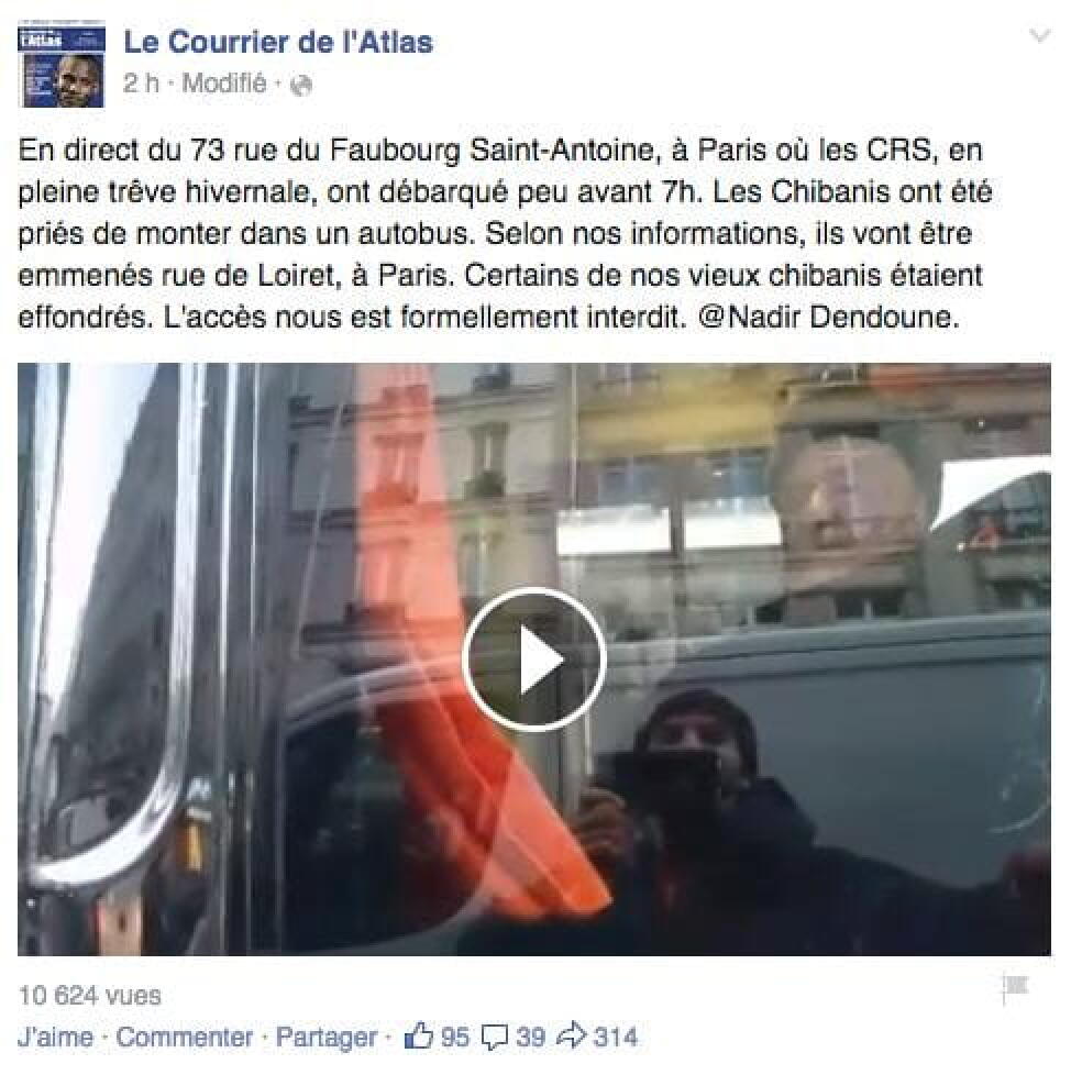 Et ce 20 février 2015, alors qu’une proposition de relogement avait été lancée, les CRS ont commencé l’expulsion des Chibanis à 7h du matin. Le Courrier de l’Atlas en suit l’actualité :