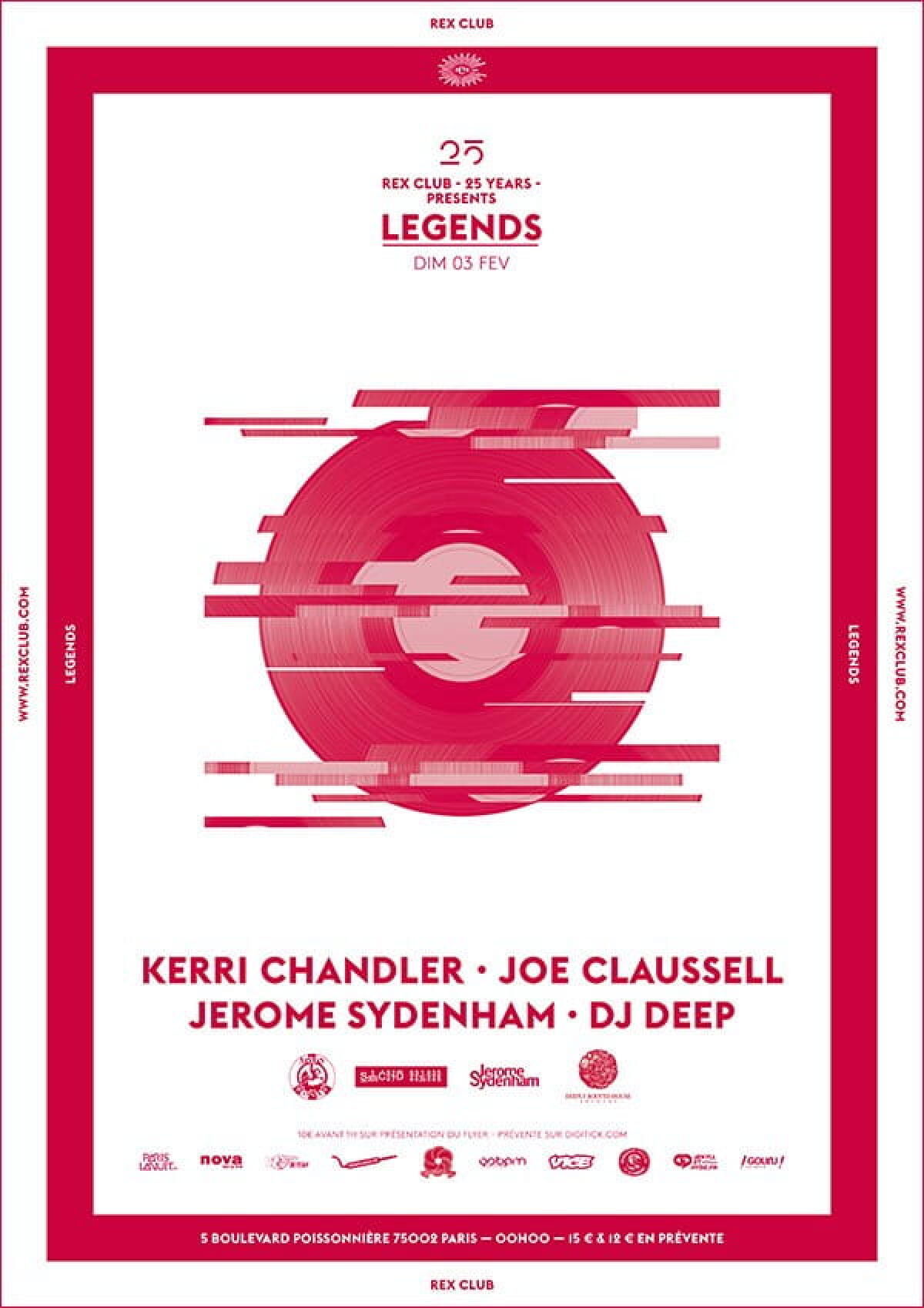 En attendant, c’est de la venue d’autres Grands patrons, tout aussi légendaires mais new-yorkais cette fois, qu’il importe de dire un mot… voire plus. Dimanche 3 février 2013, Kerri Chandler, Jerome Sydenham, Joe Claussell et Dj Deep se relaieront aux manettes du Rex pour animer la soirée Legends. Cette soirée ouvrira ainsi le bal des festivités de cette année-anniversaire avec 4 djs d’exception. Retour sur leurs parcours respectifs et leur influence globale sur la vie nocturne parisienne depuis une vingtaine d’années.