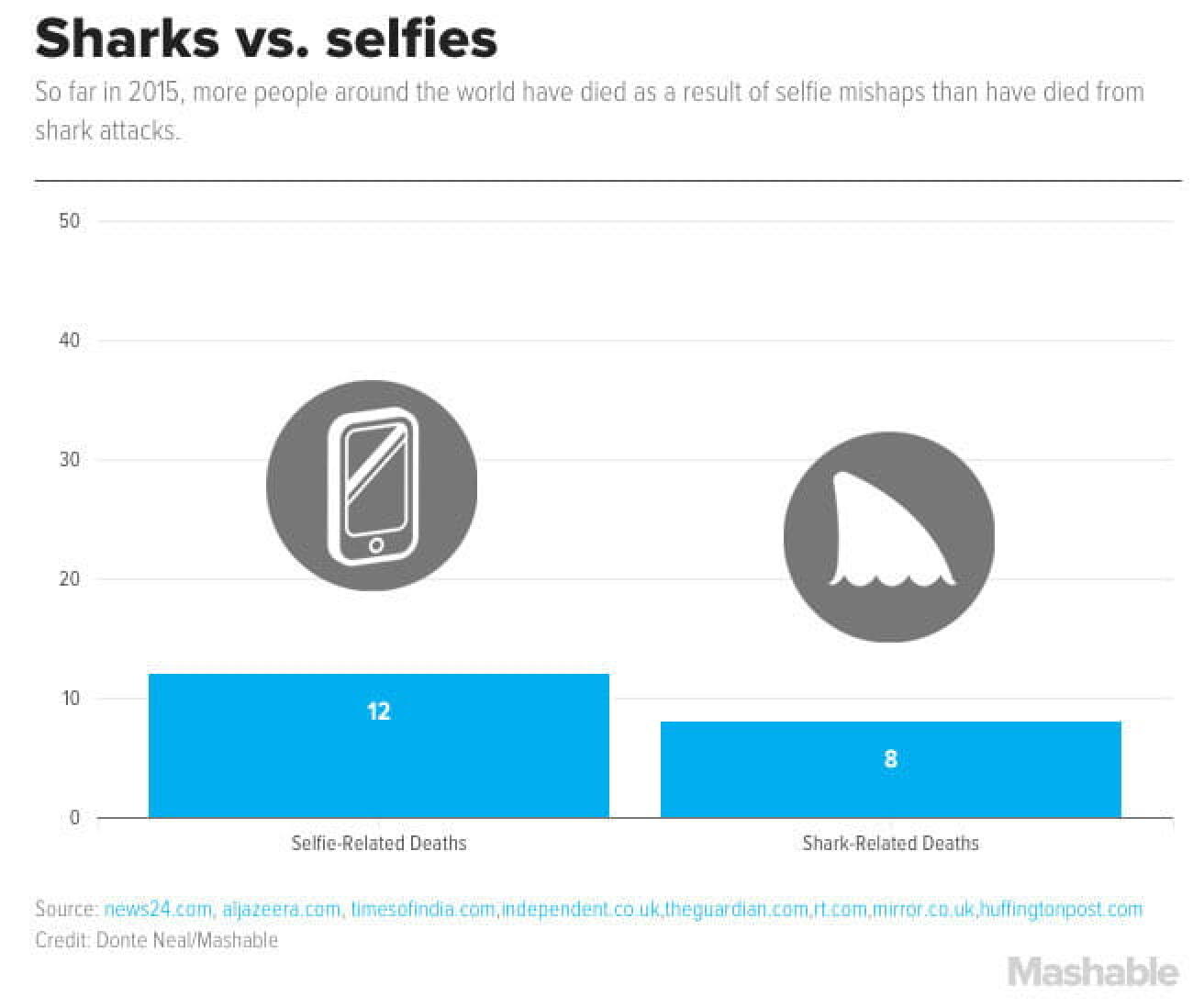 Deux informations en une et la première peut faire rire, tant elle paraît ridicule, mais elle permet de mettre en perspective l’incroyable crainte que les gens ont des requins alors que nous sommes davantage un ennemi pour eux qu’ils ne le sont pour nous. En effet, récemment un touriste japonais de 66 ans est mort, tandis que sa camarade de voyage a été blessée après être tombés dans les escaliers en essayant de faire un selfie au Taj Mahal. Ce décès fait monter à 12 le nombres de morts dans l’exercice du selfie en 2015 contre seulement 8 attaques mortelles de requins…