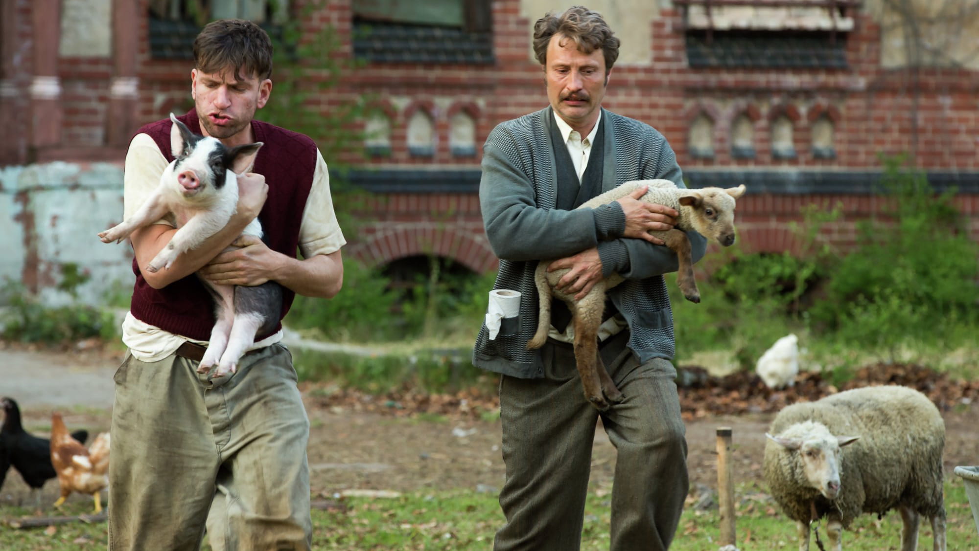 Réadaptation plutôt libre de L’île du Docteur Moreau portée notamment par un méconnaissable Mads Mikkelsen (l’acteur fétiche d’Anders T. Jensen), on retrouve dans Men & Chicken cette même figure du scientifique retiré du monde, affranchi du surmoi éthique, et dont la soif d’expérimentations le pousse vers aux confins de l’eugénisme. Mais le canevas d’H.G. Wells tourne vite ici à la farce, une farce vrillée par un humour d’un noir à faire pâlir Soulages dans sa piaule ruthénoise, avec cette ribambelle de freaks fous à lier s’ébattant dans un chaos grotesque.