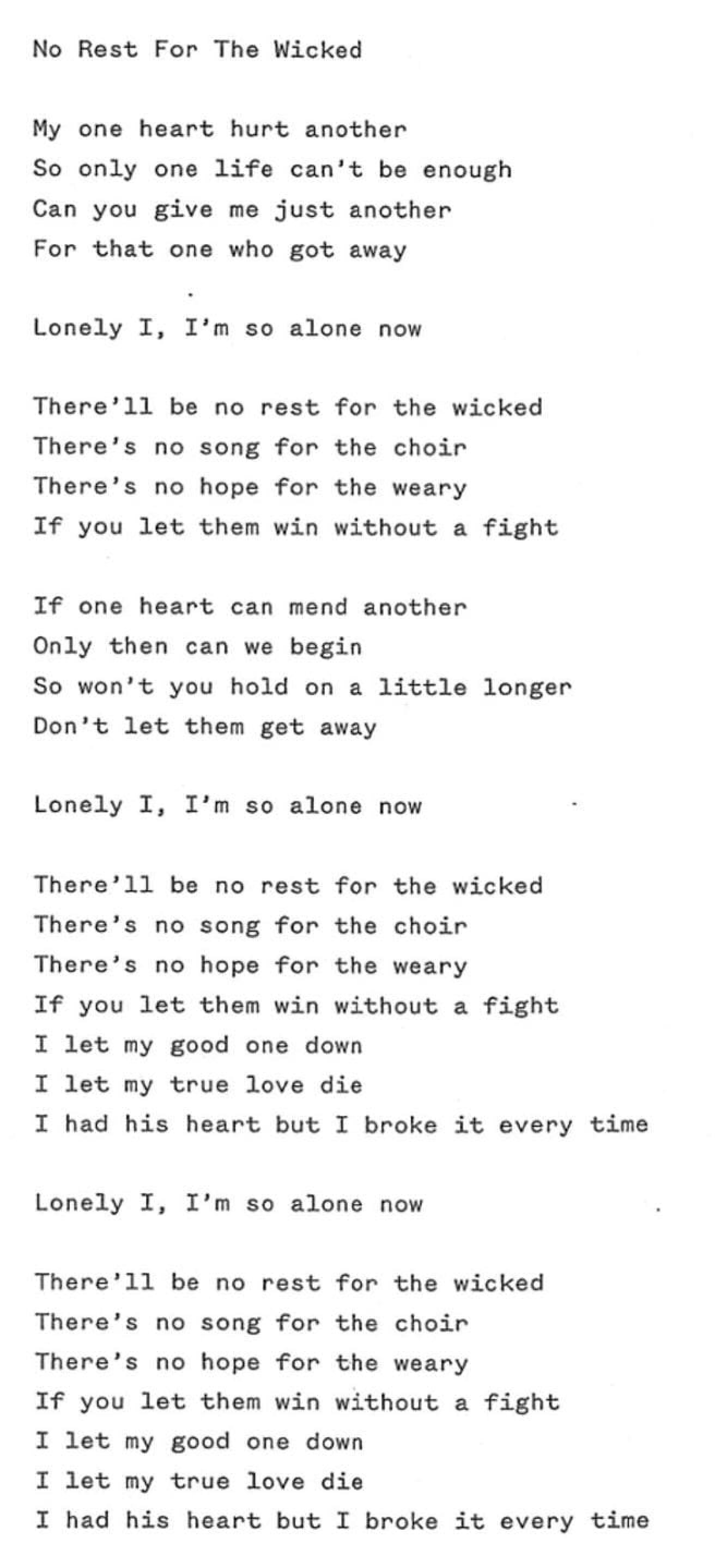 Trève d’inquiétude ! Le titre « No Rest For The Wicked » vient de sortir, et là, on retrouve tout ce qui fait le charme de la chanteuse. On vous laisse découvrir le titre, en attendant l’album I Never Learn qui sortira le 5 mai prochain. En plus, vous pouvez vous faire un petit karaoké en prime.