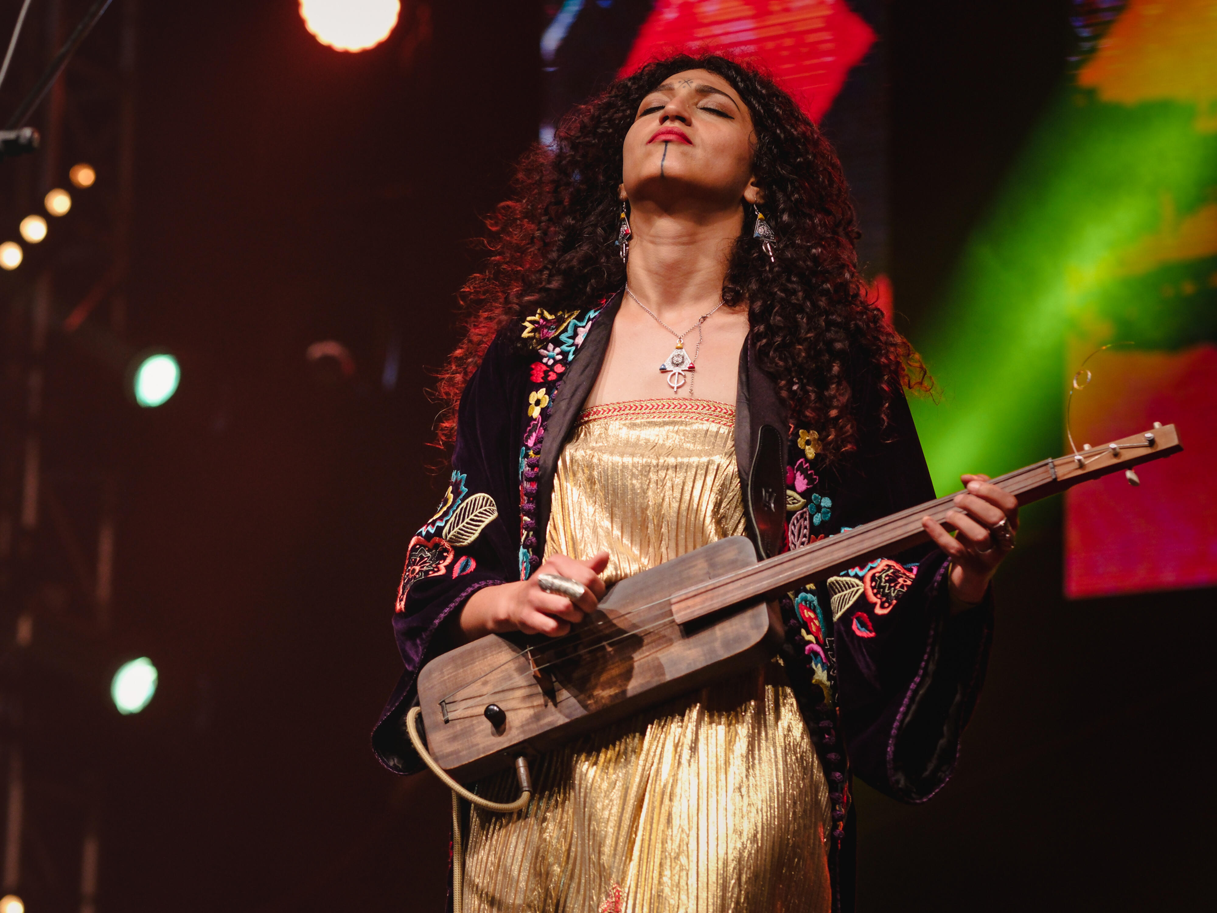 Parmi les plus attendues de cette édition 2023, celle des Amazones d’Afrique avec les voix de Mamani Keïta (Mali), Fafa Ruffino (Bénin) et Alvie Betimo (Congo), « super-groupe » panafricain initié en 2014 par Oumou Sangaré, Mariam Doumbia (Amadou et Mariam) ou Angélique Kidjo, qui célébrait la sororité et la nécessité de faire bloc face aux violences faites aux femmes sur la scène Moulay Hassan. Samedi, elles croisent leurs énergies avec celles d’une autre femme d’importance, Asma El Hamzaoui, l’une des seules femmes maalmas joueuse de guembri au Maroc, où la tradition veut pourtant que si c’est la femme qui organise le rituel, ce n’est pas elle qui joue de son instrument. Avec son groupe Bnat Timbouktou, une fusion emplie de luttes sociales, d’universalité et donc d’une sororité absolument totale.