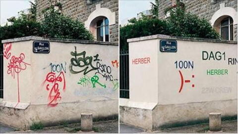 Un artiste repasse sur les graffitis pour les rendre intelligibles