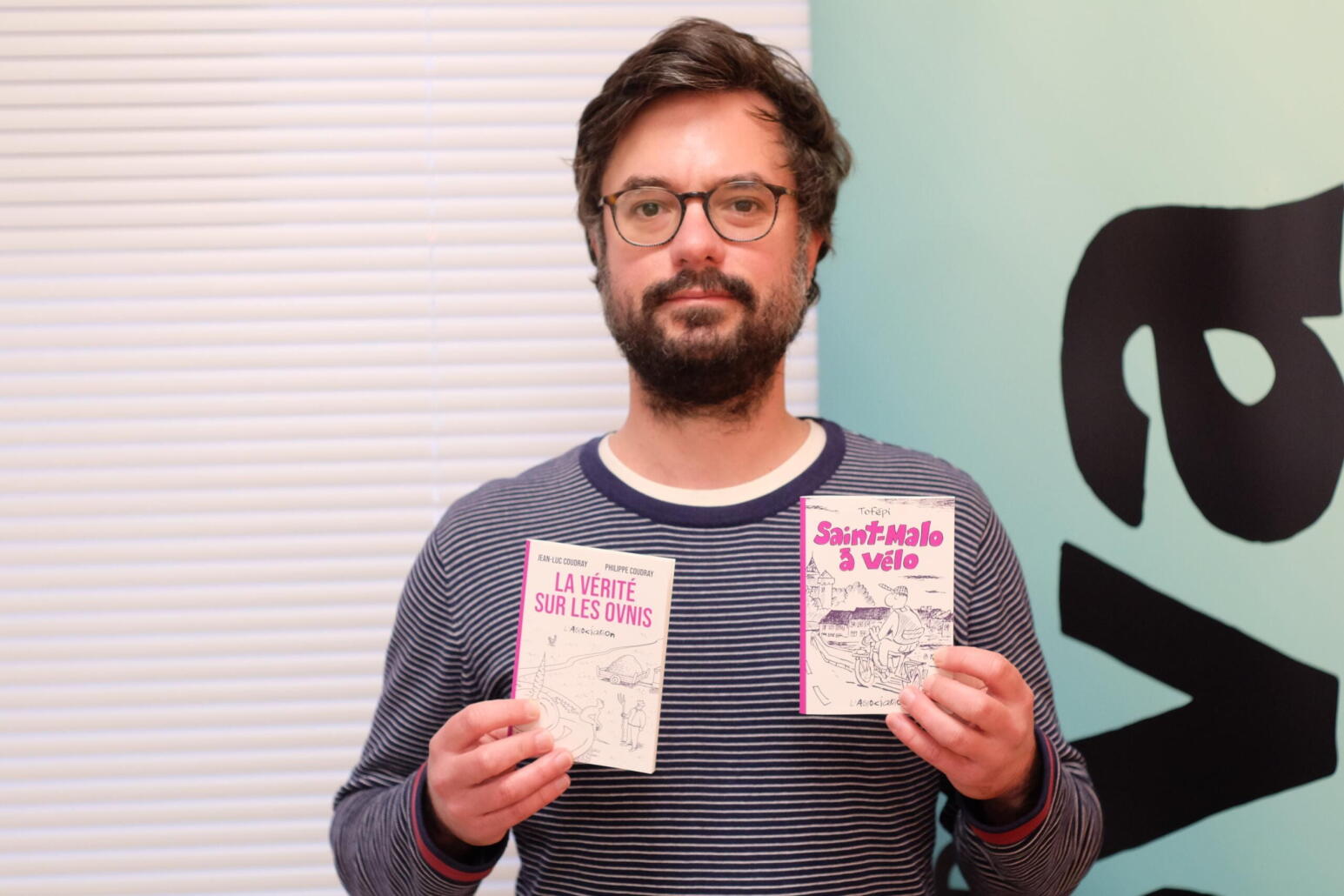Maxime a pas vraiment le temps de niaiser aujourd’hui car il doit foncer au stade de foot de l’OL voir son équipe de cœur jouer le quart de finale de la Coupe de France. C’est pour cette raison qu’il a choisi, comme BD de la semaine, deux mini-livres de la collection Patte de Mouche des éditions L’Association : Saint-Malo à Vélo de Tofépi et La Vérité sur les OVNIS de Philippe et Jean-Luc Coudray.