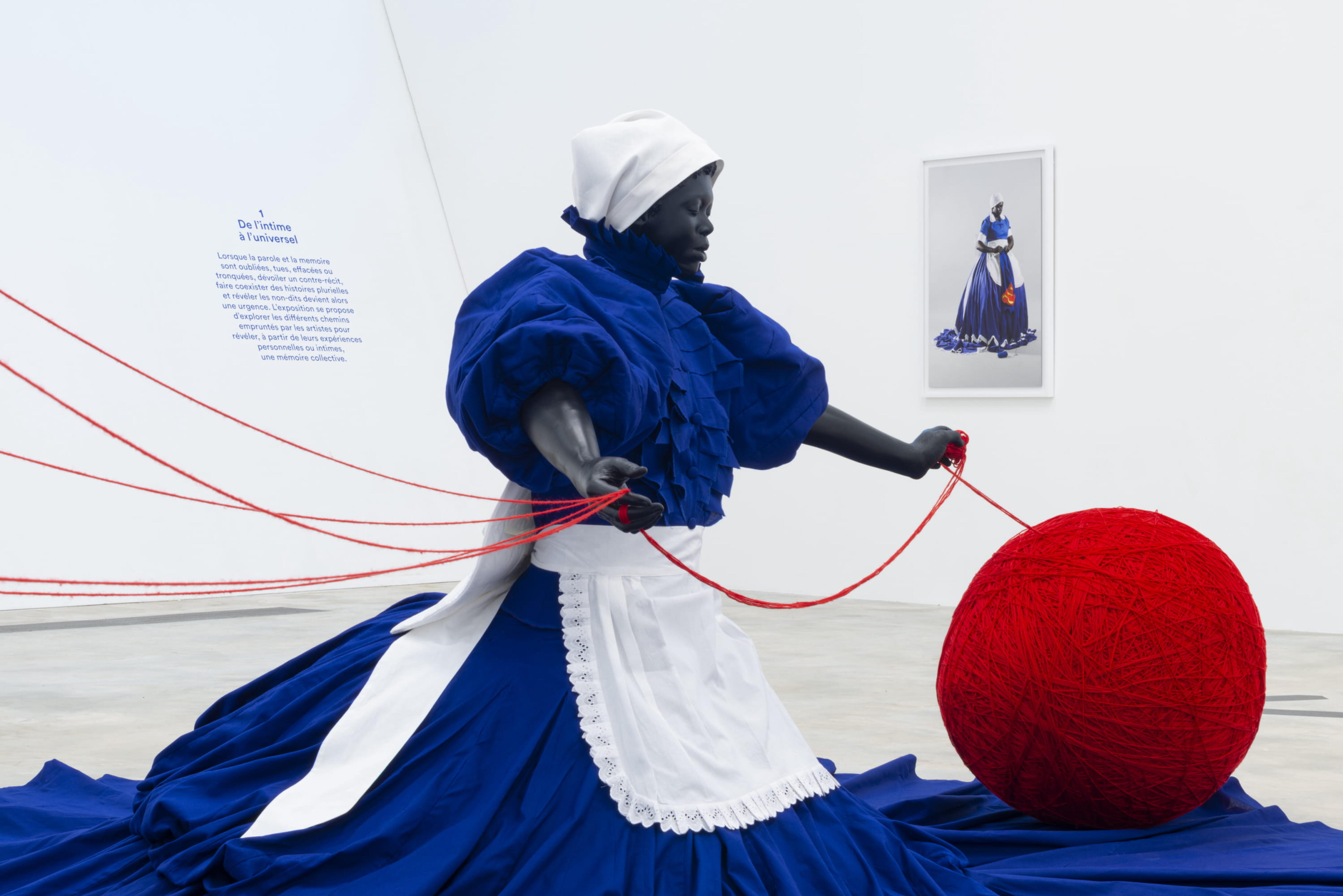 Il y aura aussi l’impressionnante servante bleue de la Sud-Africaine Mary Sibande, témoignage et commentaire vibrant sur les décennies d’apartheid, les performances d’Enam Gbewonyo (visibles pour la première fois en France) qui utilise le bas nylon comme symbole de l’invisibilisation des femmes noires, ou l’Algérienne Dalila Dalléas Bouzar, qui peint les portraits d’anciennes victimes de la guerre d’Algérie, pour les magnifier en résistantes d’un nouveau mythe fondateur.
