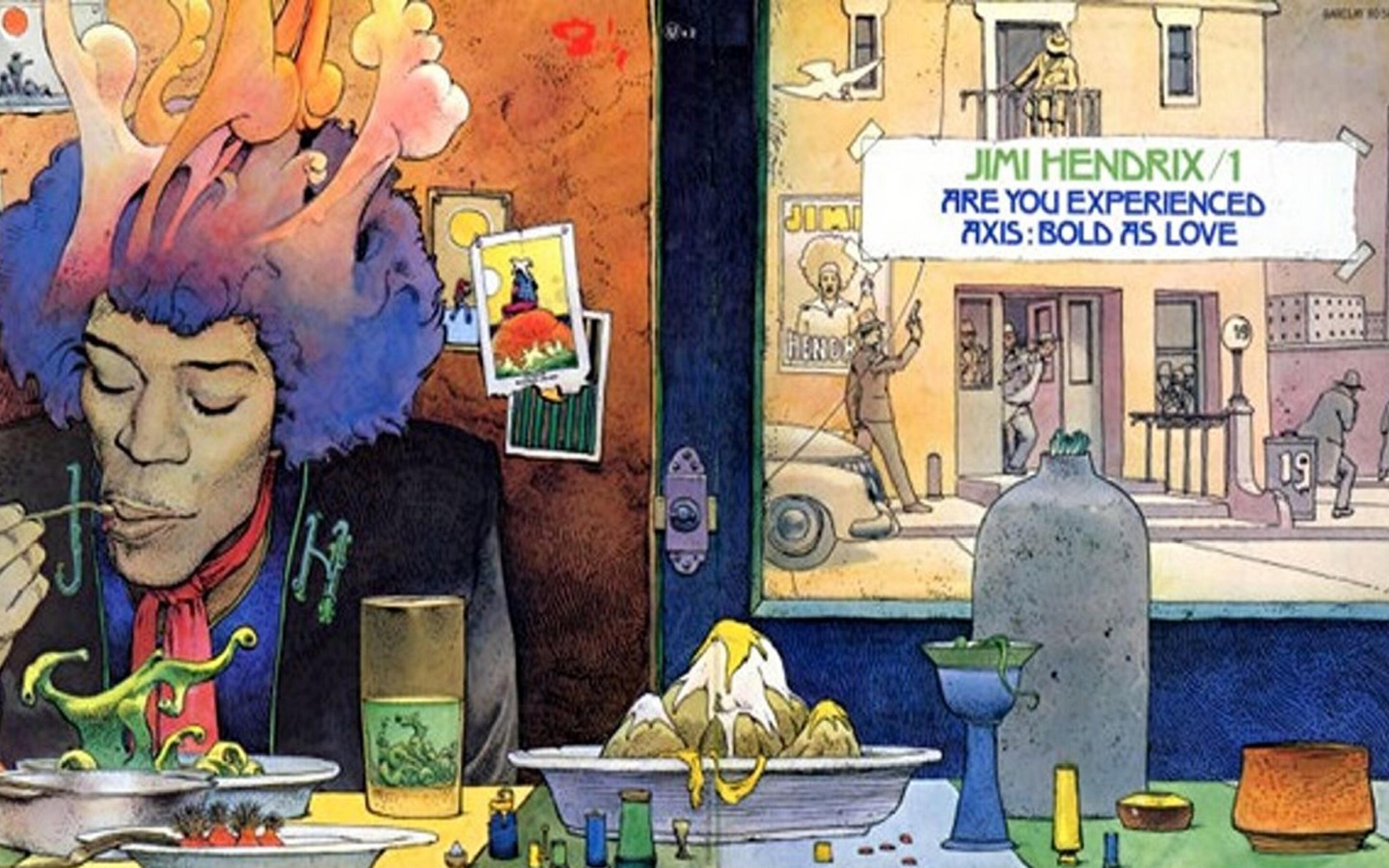 À ses débuts, Métal Hurlant est une revue de science-fiction pure où ses auteurs imaginent des voyages cosmiques et des contrées lointaines. Mais quand ils travaillent sur leur table à dessin, c’est toujours avec une bande-son folk, pop, voire franchement rock. D’ailleurs, en 1975, l’année de naissance des Humanoïdes Associés, deux de ses fondateurs, Druillet et Moebius signent des pochettes pour des vinyles d’Hendrix !