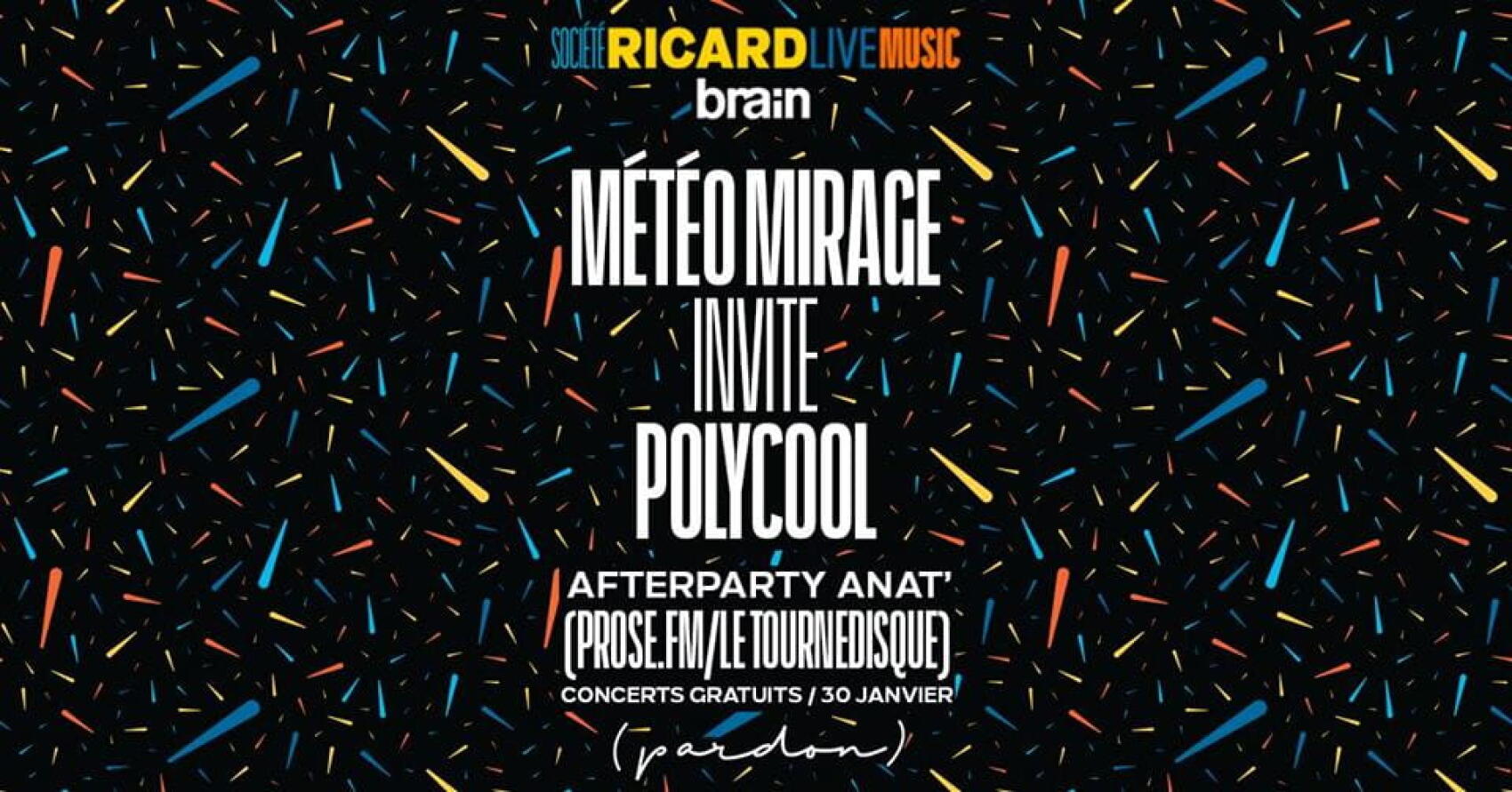 Météo Mirage invite Polycool + After Party Anat’ || Au Pardon le mercredi 30 janvier || 114 Rue Oberkampf, 75011 Paris de 20:00 à 03:00 || Gratuit || Ici l’événement