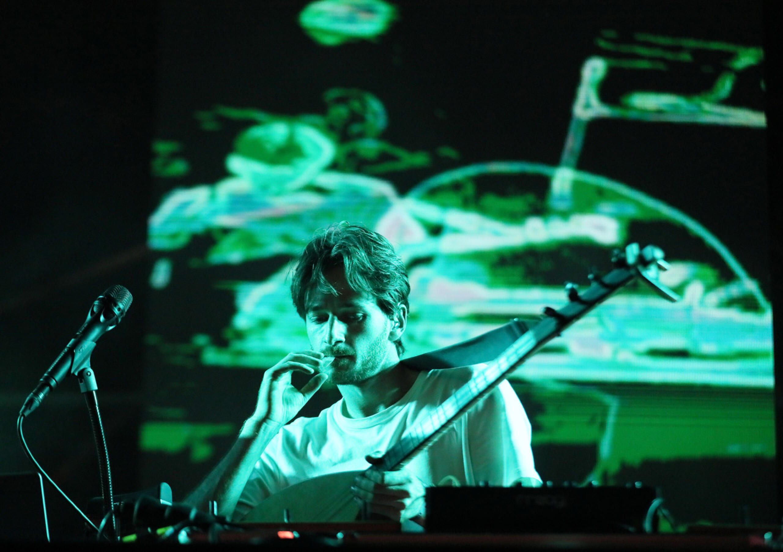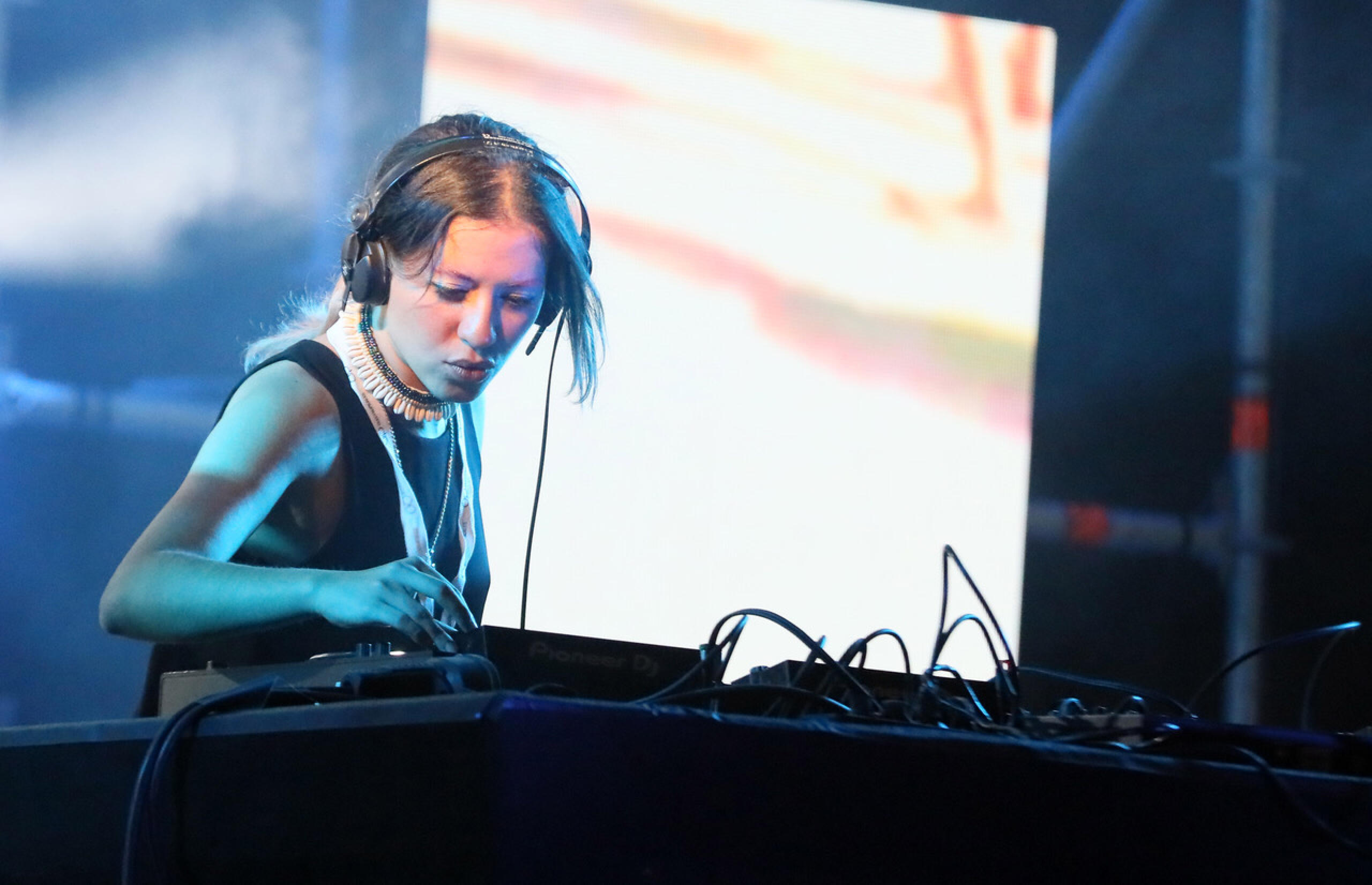 Le troisième âge, on le croise aussi au contact d’une jeunesse d’avant-garde qui fait la fête devant le set de la très active DJ lyonnaise Flore (deux albums, des tas d’EP et remixes, le label POLAAR qu’elle a créé avec Marc Weistroff), puis de Juba, Britannique d’origine nigériane qui mixe musiques électroniques et musiques importées du continent africain. On en croise aussi devant le set de la Marocaine ڭليثر Glitter٥٥, dont le set, maquillé par un habillage présenté pour la première fois aux Nuits Sonores (Musahara de Nathan Gombert et Lisa Laurent) tabasse sévère. Samples chaabi, kicks techno, rythmiques breakbeats et gqom, bouchons de protection obligatoires dans les oreilles. L’océan, lui, fait des vagues jusqu’à la Méditerranée qui borde la ville de Rabat — où elle est née.