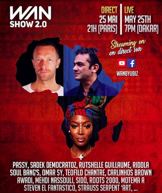 Autre événement confiné, sous le credo Together As One, le WAN (World African Network) a été lancé par le journaliste et directeur d’UbiznewsTV Amobé Mévégué, et a pour parrain le chanteur sénégalais Youssou N’Dour. L’événement se déploie toute la journée avec différentes tables rondes sur l’avenir du continent, avant de se clôturer par deux heures de concert à 19h, diffusé gratuitement sur les réseaux sociaux. De très nombreux artistes ont répondu présent : Salif Keita, Fally Ipupa, Oumou Sangaré, Flavia Coelho, Cheick Tidiane Seck, Khadja Nin, Tiken Jah Fakoly…