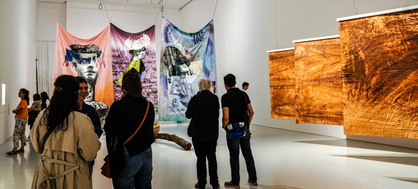 Au micro de Bintou Simporé, Hugues Marly et Flavien Larcade, les artistes dévoilent leurs œuvres, réalisées pour cette exposition, dédiée à leur perception des relations entre le continent africain et le reste du globe.