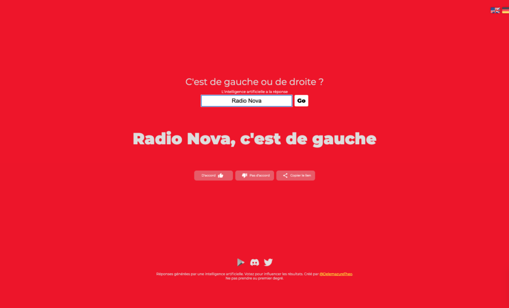 En 2022, un petit malin (et doctorant de l’école Paris Dauphine) du nom de Théo Delemazure a créé DeGaucheOuDeDroite.fr, un site qui, à l’aide d’une IA, nous indique si tel ou tel truc était plutôt de droite ou de gauche. On a fait quelques tests pour vous : Dobby, l’elfe de maison de Harry Potter, il est de gauche, Merlin l’Enchanteur, c’est un gars de droite, et manger, c’est un truc de gauchiste ET de droitard. En creusant un peu plus profondément le sujet, il est possible de tomber sur le travail du Docteur Stuart J. Turnbull-Dugarte.