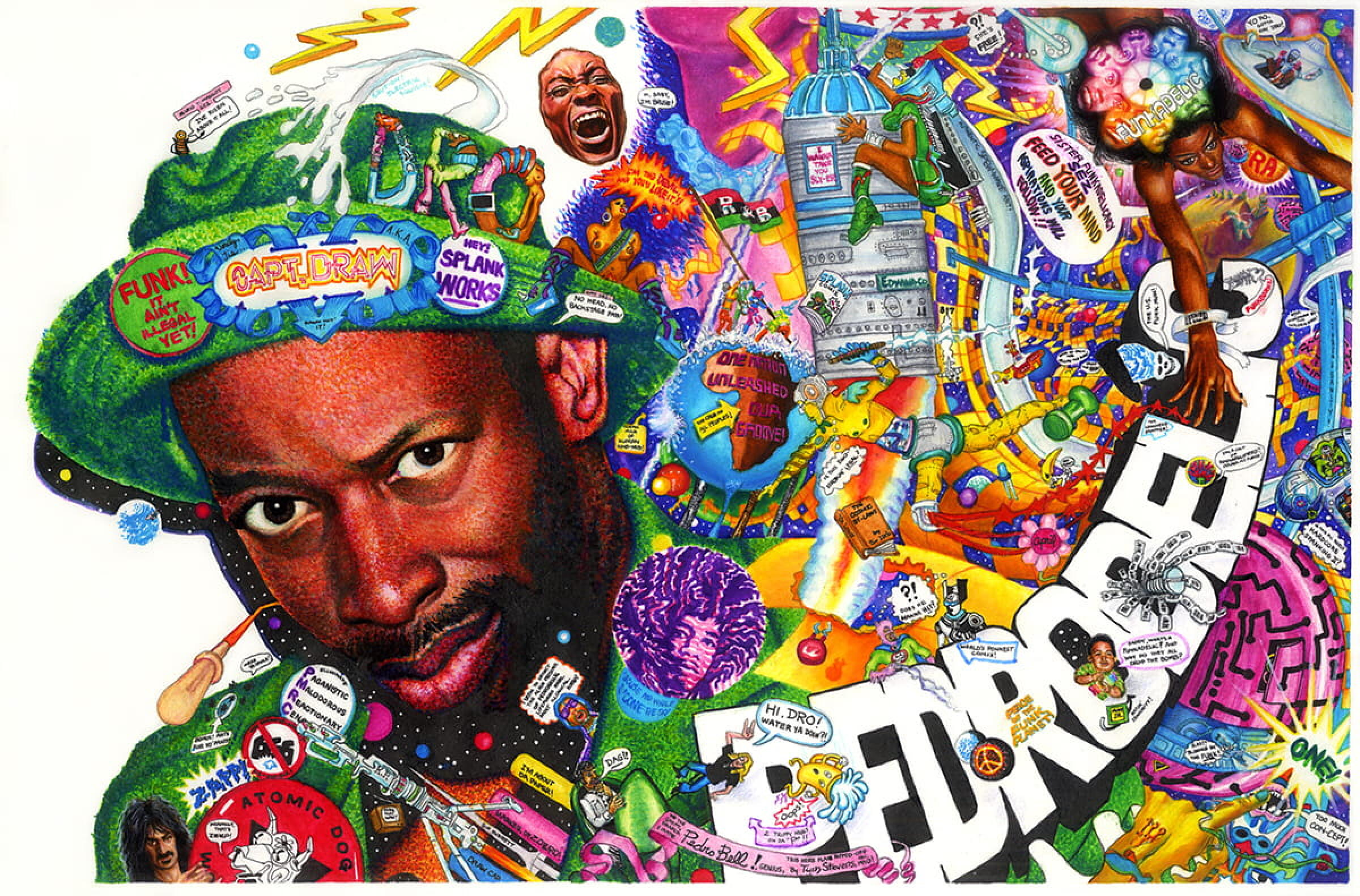 Il était l’homme derrière les pochettes de Parliament/Funkadelic, de George Clinton en « solo », et donc du P-Funk, le nom que l’on a donné aux deux groupes formés par Clinton, Parliament et Funkadelic (c’est clair, c’est ok ?). Pedro Bell, on le considérait d’ailleurs, et au même titre que Bootsy Collins, Eddie Hazel ou Bernie Worrell, comme un membre à part entière de ces groupes. Très claire transcription visuelle de ce qu’envisageait George Clinton (« le seul héritier métis de James Brown et Frank Zappa, habillé pour un carnaval SF à la Nouvelle Orléans ») d’un point de vue musical, le travail de Pedro Bell a accompagné les sorties de ces projets marqués par l’alliance du funk et du rock psychédélique de manière quasi systématique. Illustrateur d’avant-garde aux visuels reconnaissables entre 1 000, il s’est éteint aujourd’hui. Sa disparition a été confirmée par George Clinton et Bootsy Collins.